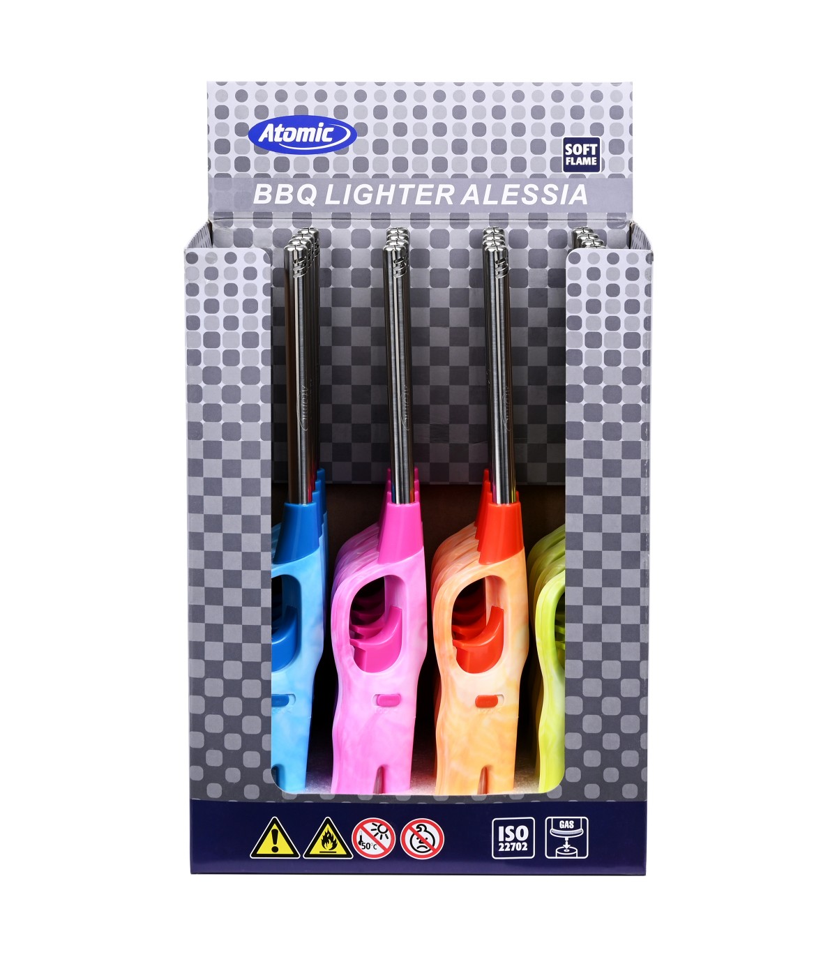 ACCENDIGAS ELETTRONICO ATOMIC BBQ MOD.ALESSIA L.27CM CONF. DA 16 PZ. ASSORTITO CON 4 COLORI