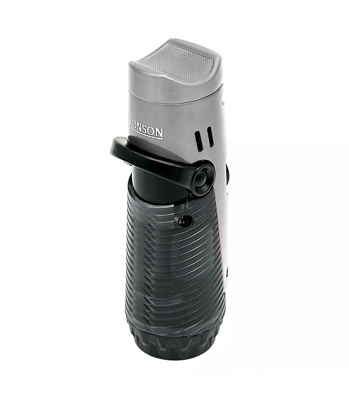 Accendino per sigaro RONSON BORA GUN METAL SILVER BLACK JET FLAME IN UNA ELEGANTE SCATOLA DA REGALO