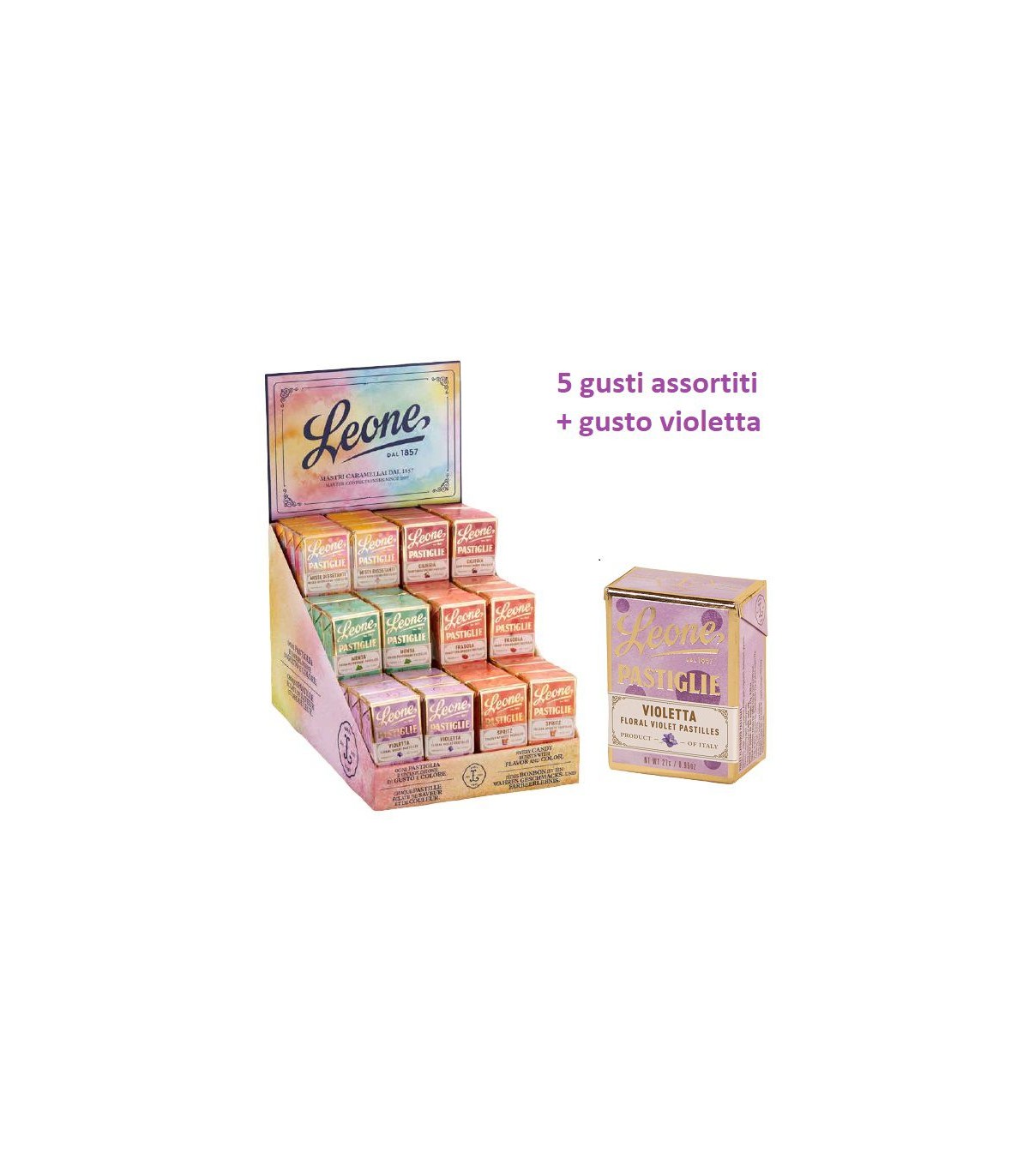 Zucchero. Addensanti: gomma arabica, gomma adragante. Essenze ed estratti di erbe e piante aromatiche, aromi. Acidificante: acido tartarico. Coloranti naturali: cocciniglia, curcumina, complessi rameici delle clorofilline.