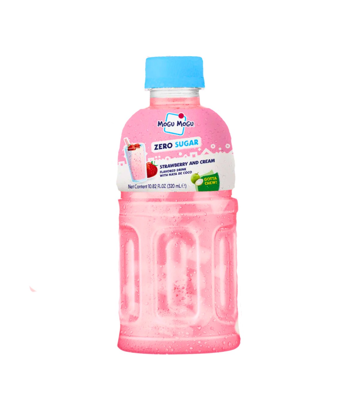 BEVANDA MOGU MOGU AL GUSTO DI CREMA DI FRAGOLA SENZA ZUCCHERI CON PEZZI DI FRUTTA BOTTIGLIA DA 320ML CONF. 6 PZ.