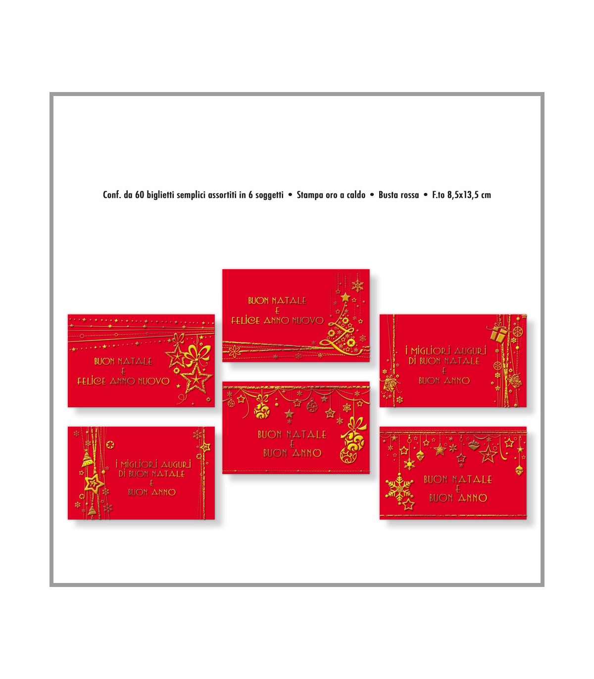 CARTONCINI AUGURALI di natale SEMPLICI ROSSI CONF. 60 PZ. assortiti in 6 soggetti