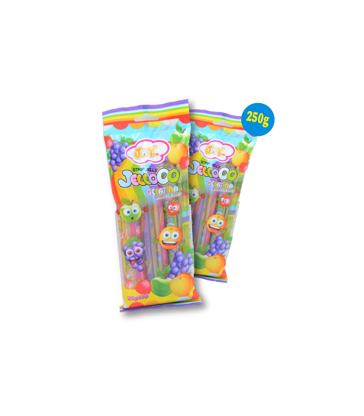 CARAMELLE JELLOOO STRIPS gelatine alla frutta con divertentissime challenge su Tik Tok ai gusti assortiti busta 250G.