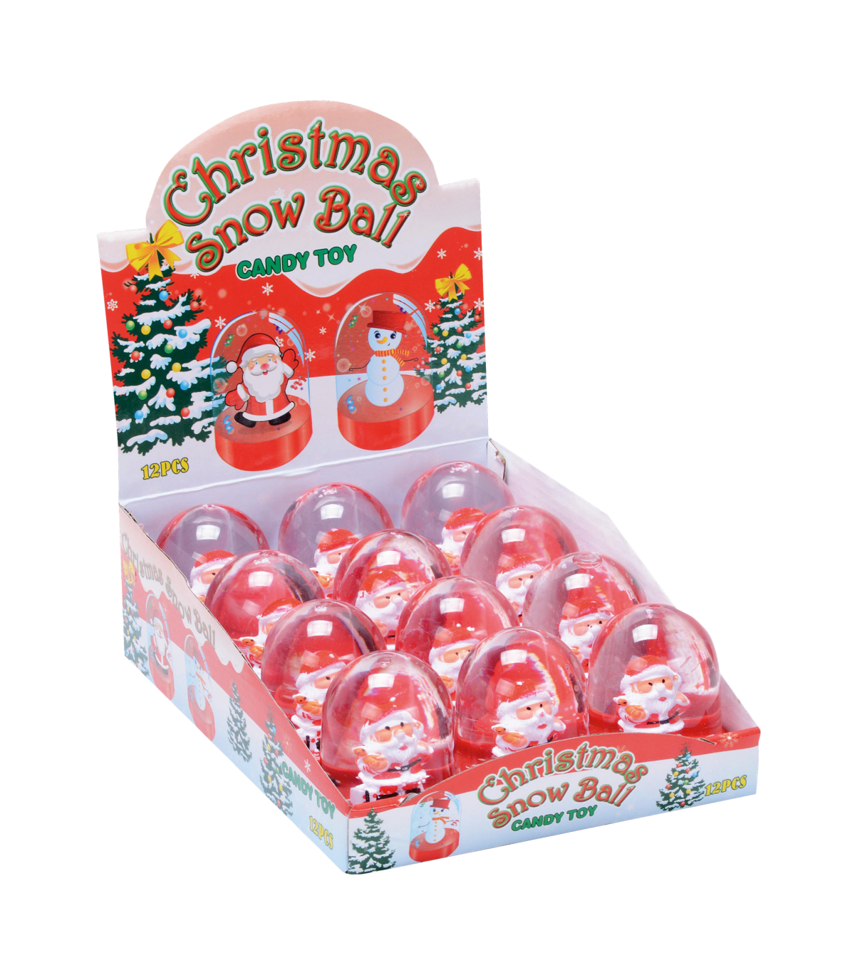 BABBO NATALE GIOCATTOLO IN UNA SFERA DI PLASTICA CON EFFETTO NEVE CON GUSTOSE CARAMELLE ASSORTITE ALLA FRUTTA da 3g CONF. 12PZ