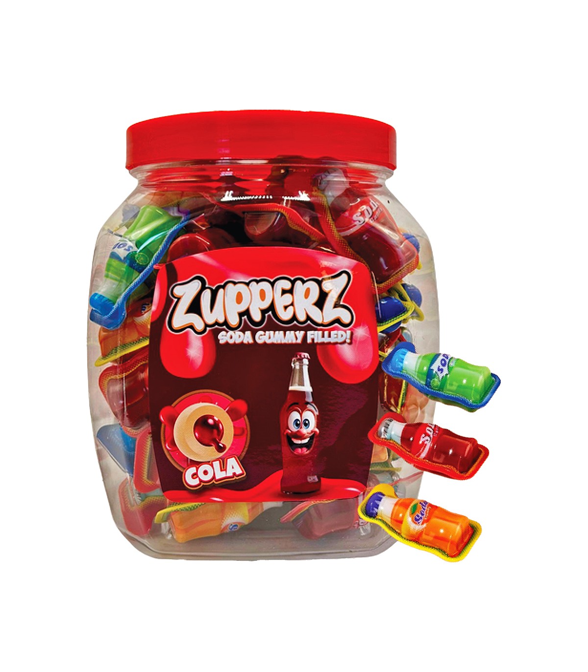CARAMELLE GOMMOSE ZUPPERZ SODA gummy RIPIENE DI GEL liquido gusto colaCONFEZIONATE SINGOLARMENTE EXPO DA 65 PZ. DA 10 GR.
