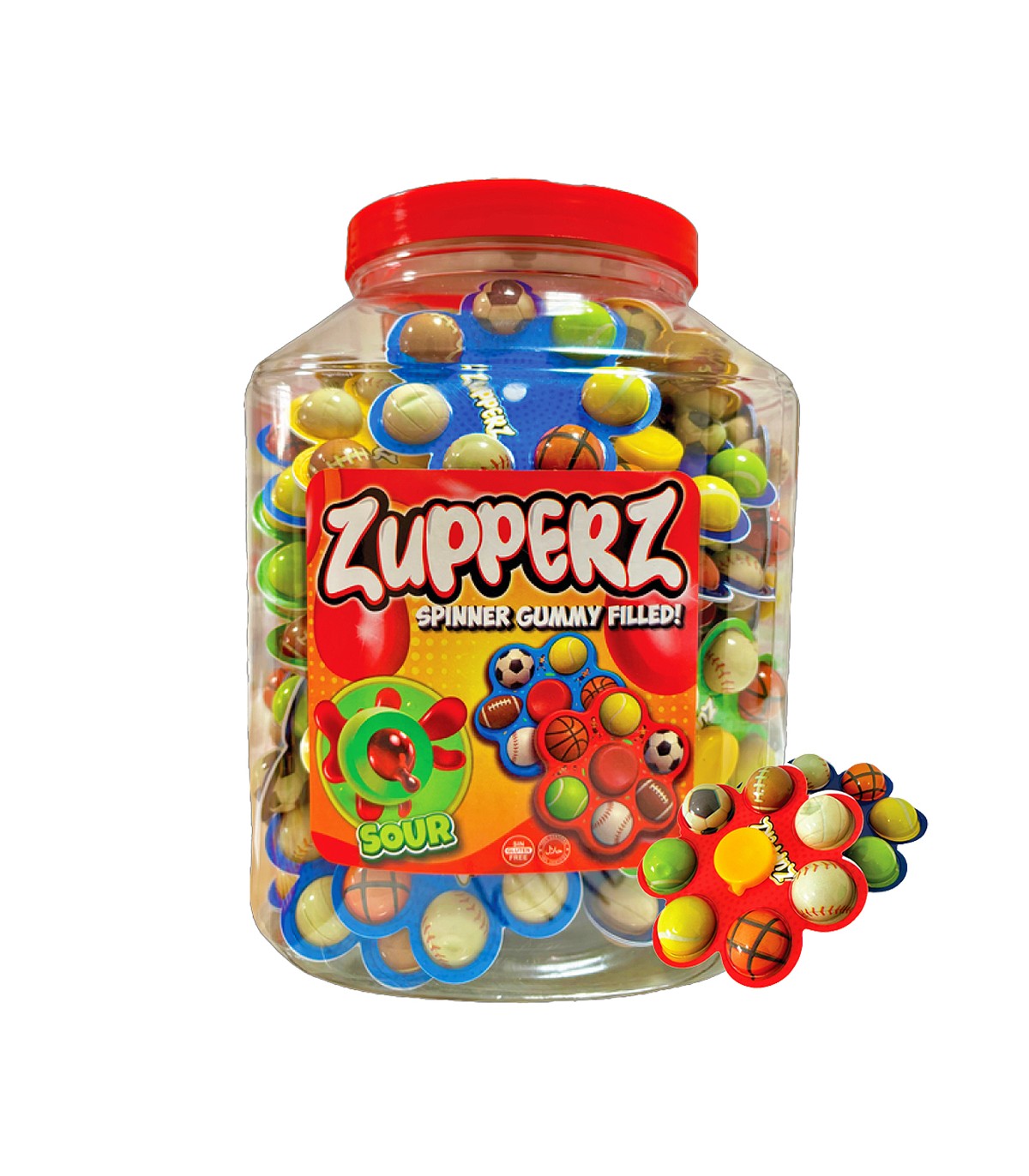 CARAMELLE GOMMOSE ZUPPERZ SPINNER RIPIENE DI GEL ALLA frutta sour acido CONFEZIONATE SINGOLARMENTE EXPO 50 PZ. DA 14 GR.