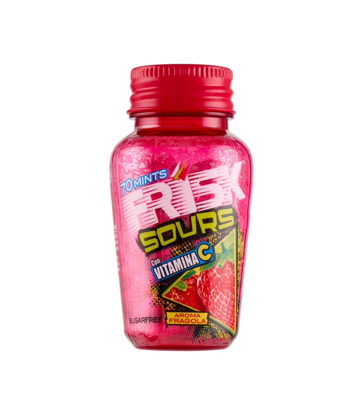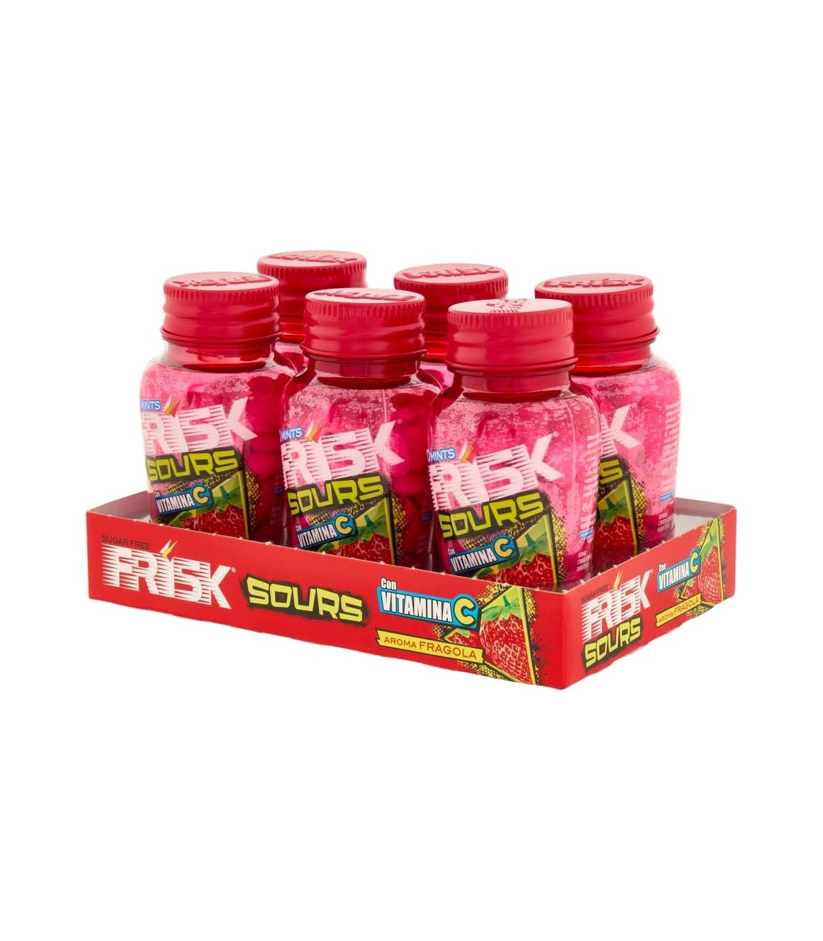 FRISK SOUR Strawberry, Caramelle Dure, Gusto Fragola, senza Zucchecchero 70 Microcompresse conf.6pz