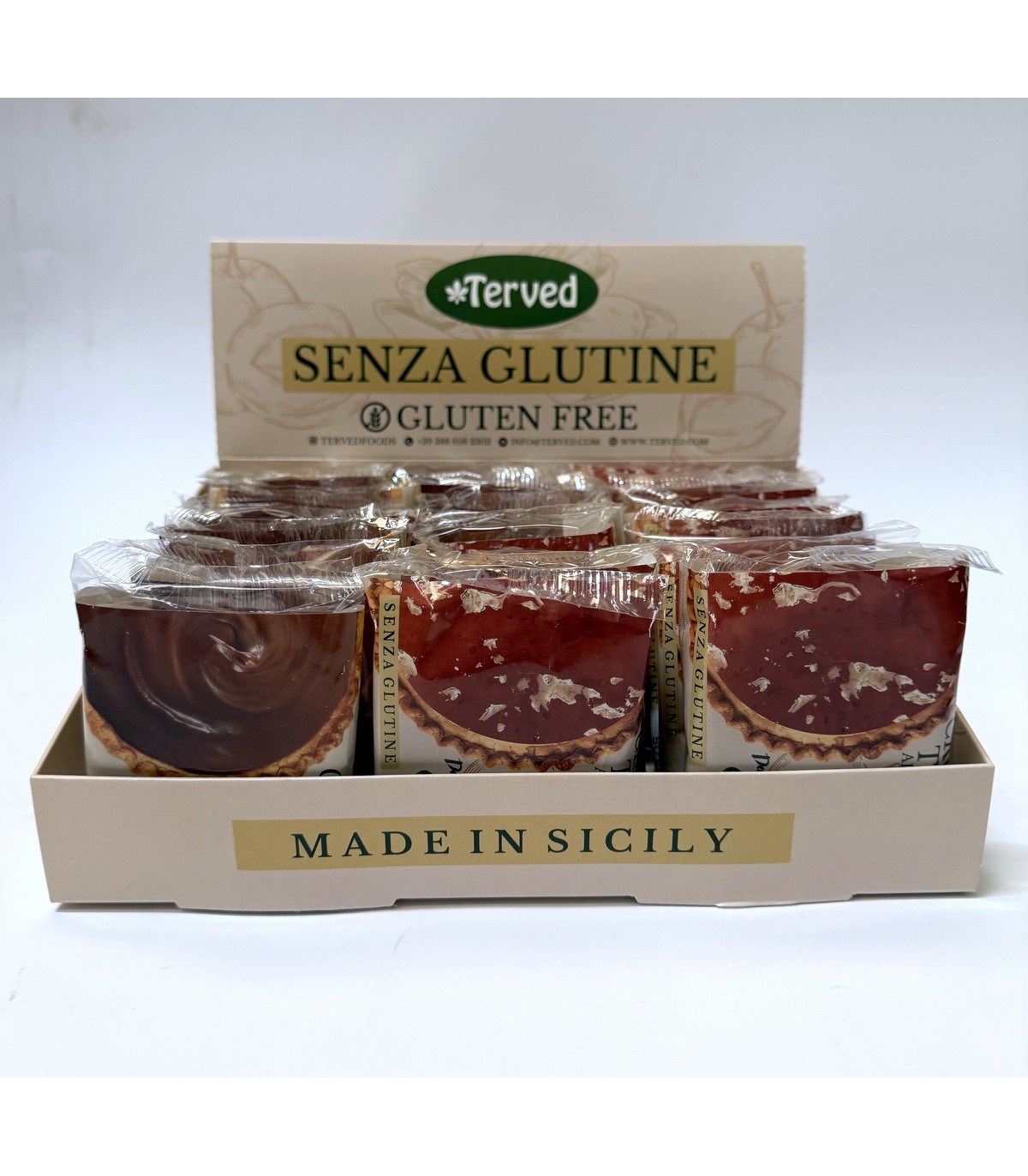 CROSTATINE ARTIGIANALI TERVED 50G SENZA GLUTINE 2 GUSTI ALBICOCCA E NOCCIOLA con farina di grano di saraceno EXPO DA 24PZ.