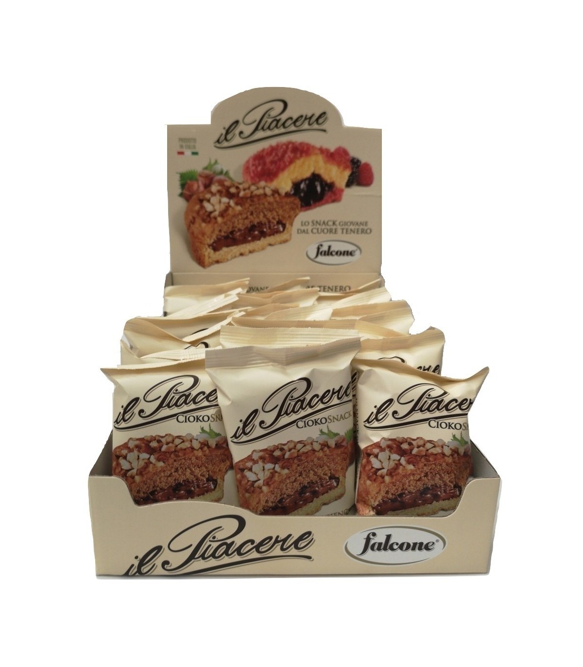 IL PIACERE RED FRUIT SNACK - PRODOTTO DOLCIARIO DA FORNO - Ingredienti: Farina di grano tenero tipo "0', zucchero semolato, amido di frumento, melange (burro 50%, olio di girasole, olio di cocco) , uova intere pastorizzate, farina di armelline, alkermes (aromi, colorante azorubina, caramello), olio di semi di girasole alto oleico, yogurt intero (latte), sciroppo di glucosio, aromi, tuorlo d'uovo, proteine del siero di latte, emulsionante: mono e digliceridi degli acidi grassi, lecitina di soia, sale. FARCITURA 31%: passata di lampone 15% (sciroppo di glucosio-fruttosio-saccarosio, purea di lampone 20%, addensante: pectina, acidificante: acido citrico, conservante: potassio sorbato, colorante: antociani, aromi), passata di more 16%: (sciroppo di glucosio-fruttosio, purea di more 25%, saccarosio, caramello, addensante: pectina, acidificante: pectina, acidificante: acido citrico, conservante: potassio sorbato, colorante: antociani, aromi).