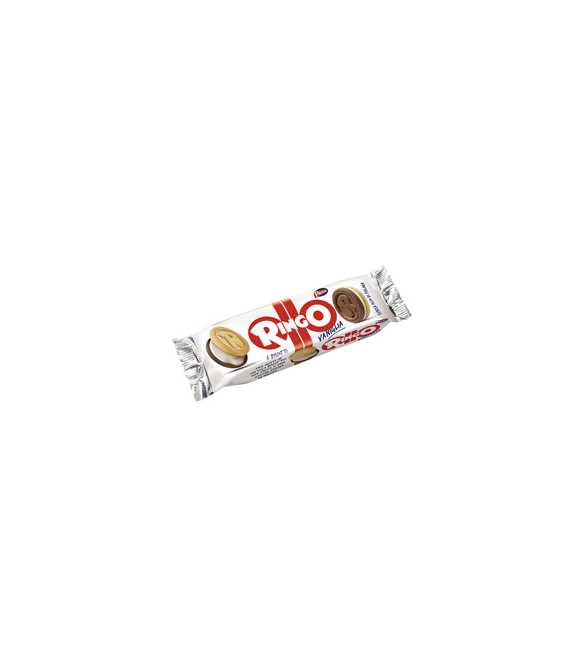 INGREDIENTI: Biscotti (75%): farina di frumento, olio di semi di girasole, zucchero, amido di frumento, cacao magro, sciroppo di glucosio, siero di latte in polvere, sale, agenti lievitanti (carbonato acido di sodio, carbonato acido d'ammonio), aroma vanillina. Crema (25%): olio e grasso vegetali non idrogenati (colza, karitè), zucchero, destrosio, siero di latte in polvere, amido di frumento, aroma vanillina 0,1%. Può contenere tracce di: arachide, frutta a guscio, sesamo, soia e uova. Gli ingredienti evidenziati possono provocare reazioni in persone allergiche o intolleranti.