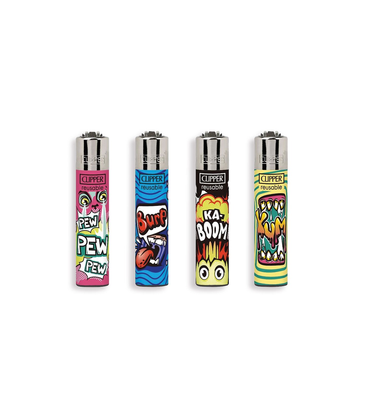 Accendino Clipper Micro ONOMATOPOEIA conf. 48 pz. assortiti con 4 grafiche