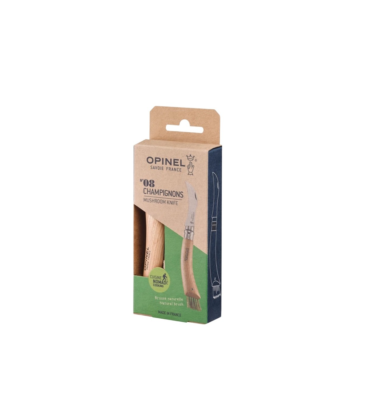 Coltello Chiudibile e Tascabile OPINEL da Funghi con manico in Legno Di Faggio e Lama Curva in acciaio inox da 8 cm.