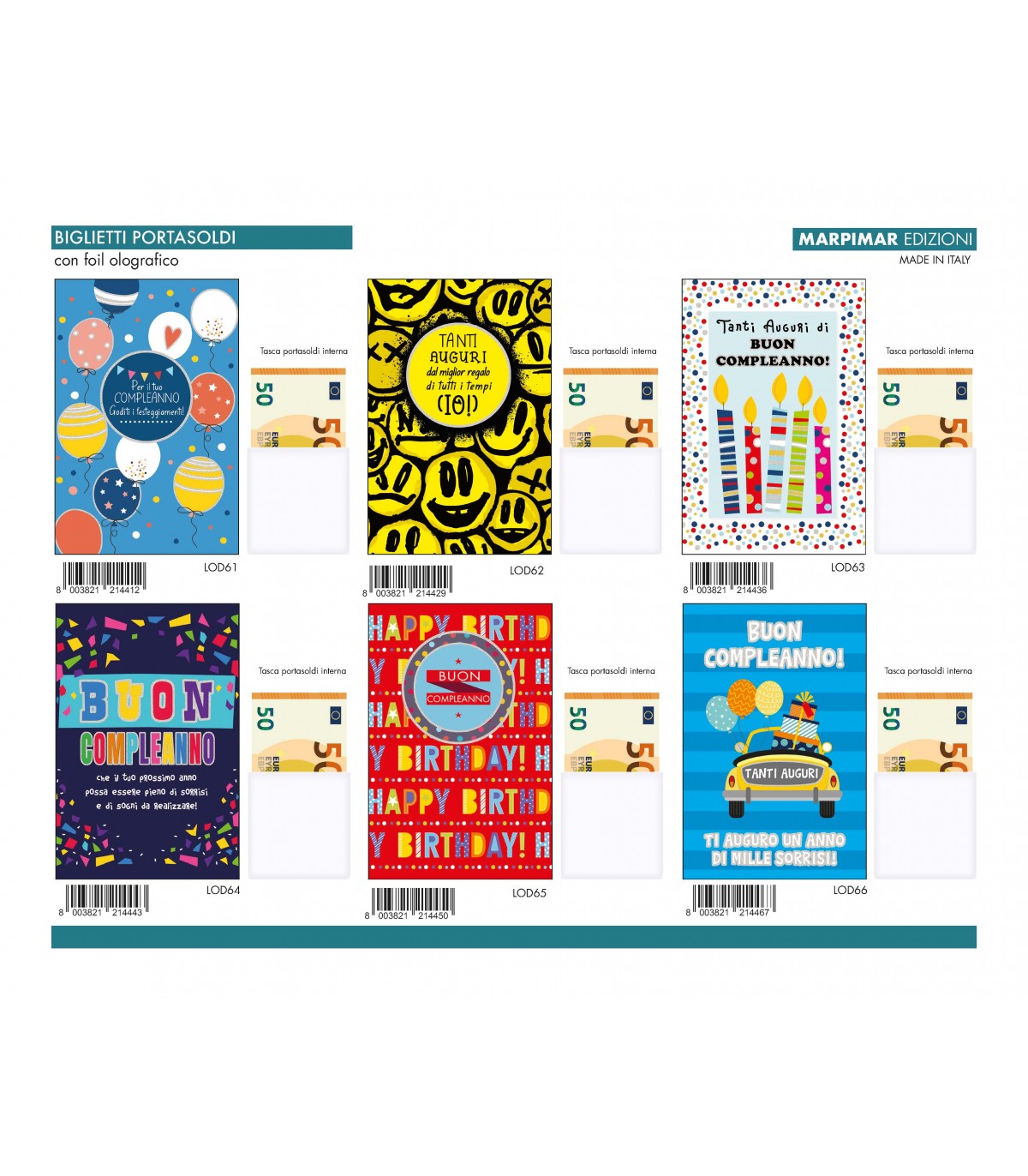 Testi augurali interni ed esterni. Busta colorata