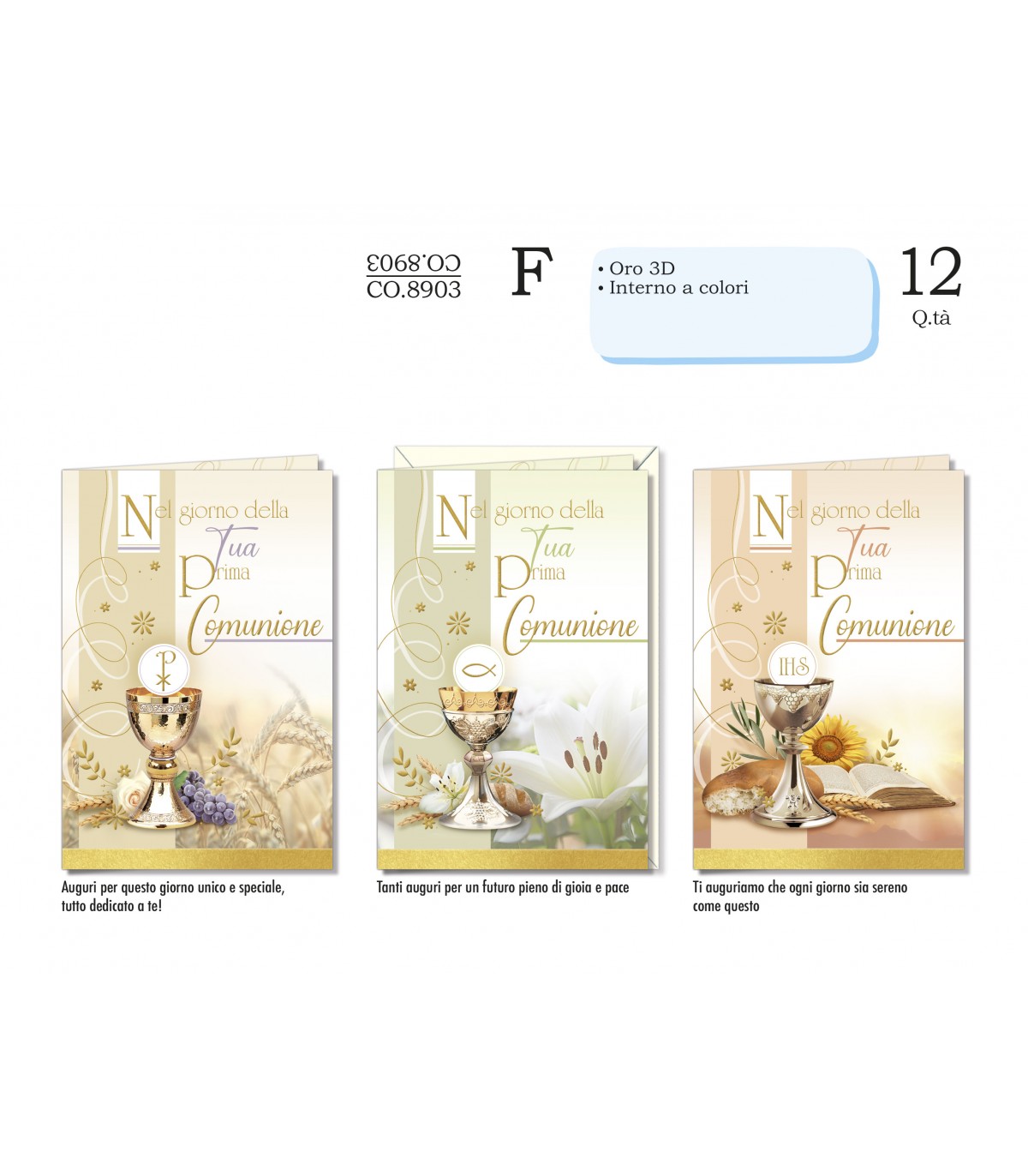 Biglietto CROMO PRIMA COMUNIONE INTERNO A COLORI E LAVORAZIONI IN ORO IN 3D CONF. 12 PZ. ASSORTITI