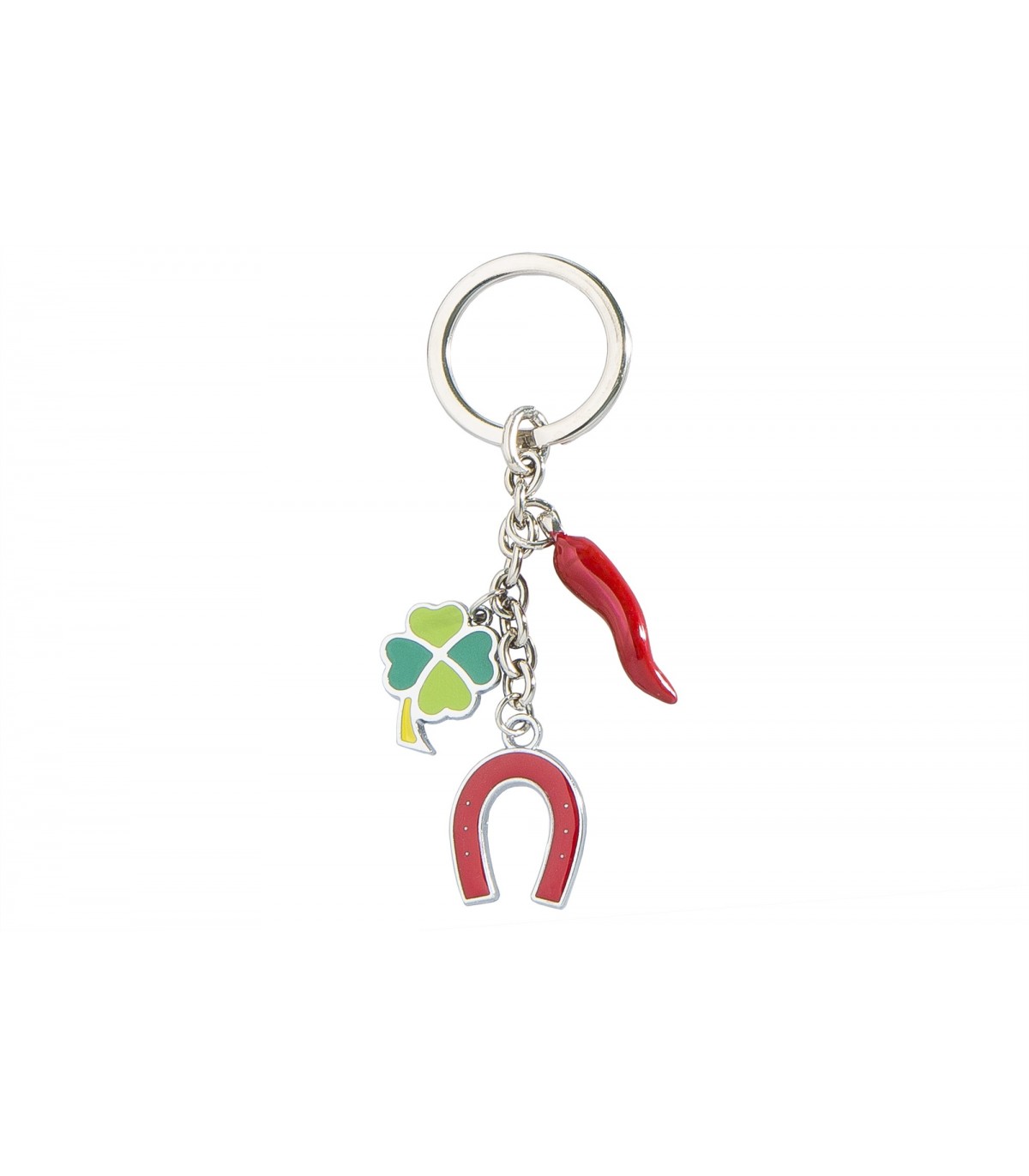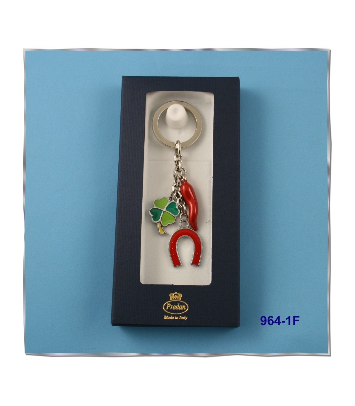 Corno Quadrifoglio e ferro di cavallo Predan in metallo smaltato a mano CONFEZIONATO IN SCATOLA DA REGALO