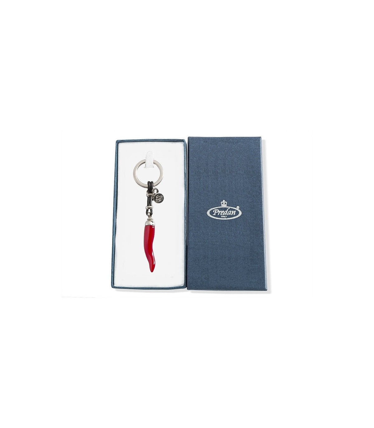 CORNETTO PORTAFORTUNA PREDAN IN RESINA CON CUOIO H.5 CM CONFEZIONATO IN SCATOLA DA REGALO