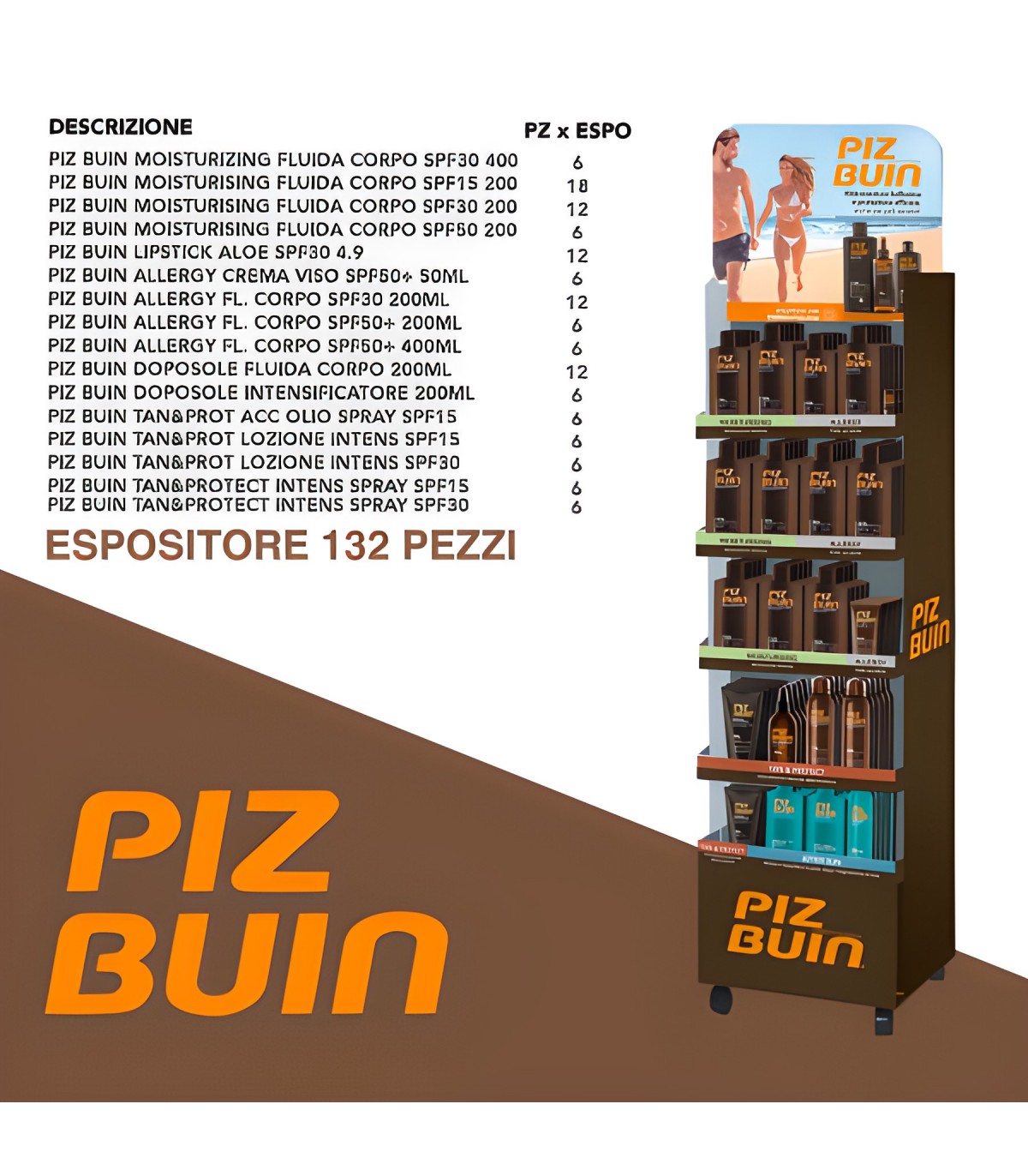 EXPO DA TERRA SOLARI PIZ BUIN DA 132 PZ. ASS.+ OMAGGIO 1 CF. ACC. PIETRINA PROF IN PRENOTAZIONE C/O DAL 13/4/26