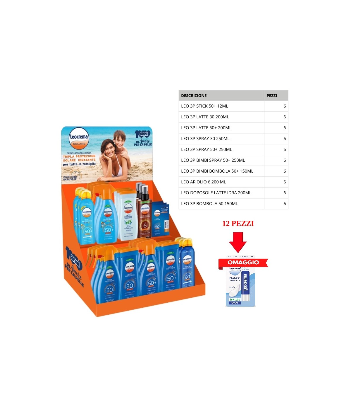 EXPO DA BANCO SOLARI LEOCREMA DA 60 PZ. ASSORTITI + OMAGGIO 12PZ. LIP STICK LEOCREMA IN PRENOTAZIONE C/O DAL 13/4/26