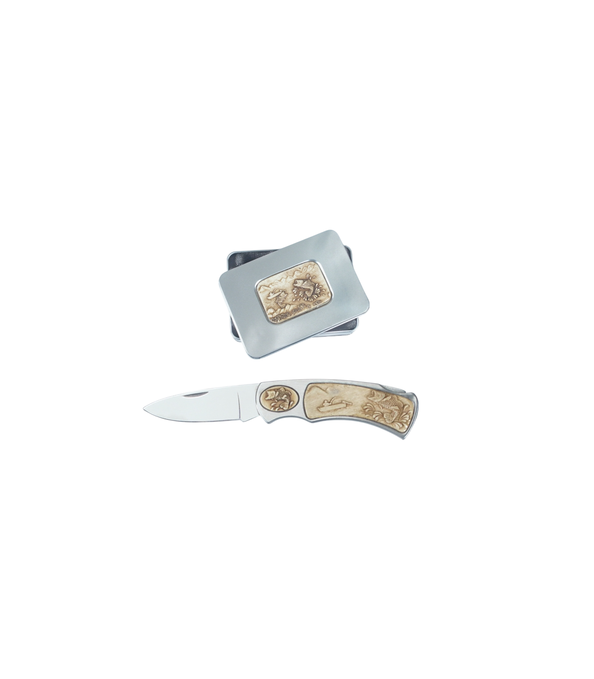 Coltello GEIT FISH RESIN con Lama in Acciaio inossidabile 7.3 CM MANICO IN RILIEVO CONFEZIONATO IN SCATOLA REGALO DI METALLO