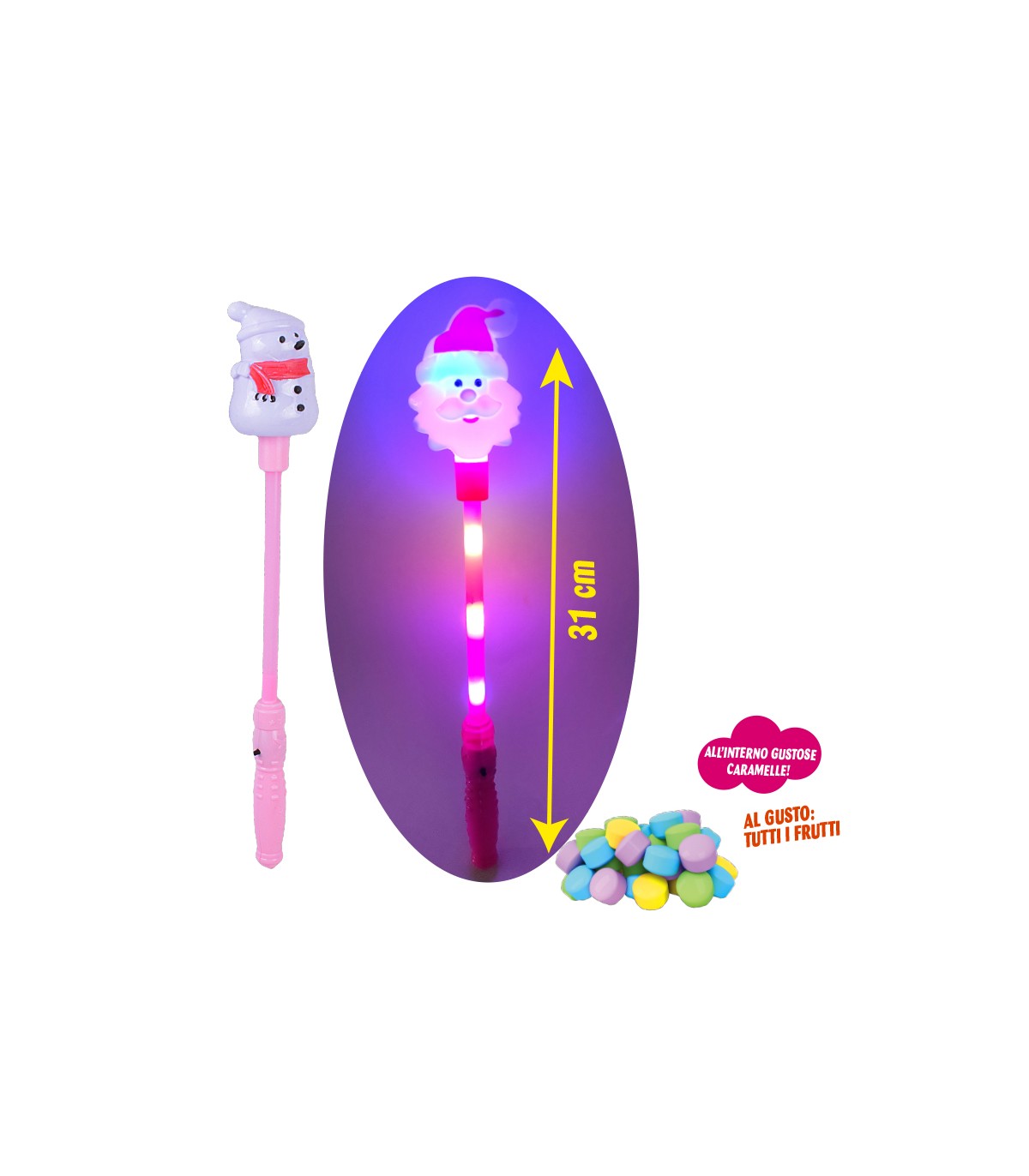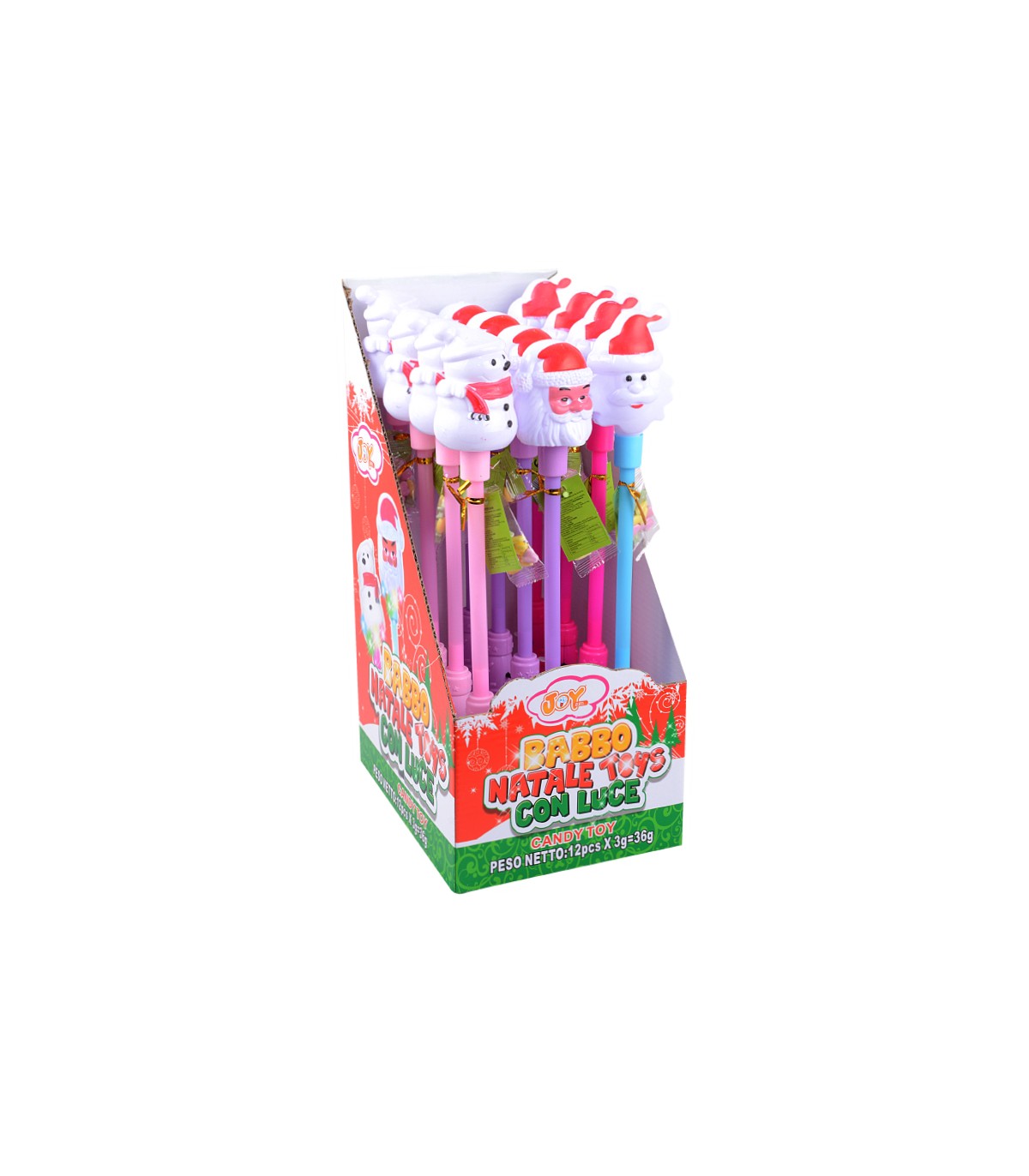 CARAMELLA GIOCATTOLO BABBO NATALE TOYS CON LUCE ALTEZZA 31CM GUSTI ASSORTITI TUTTI FRUTTI ESPOSITORE DA 12 PZ.