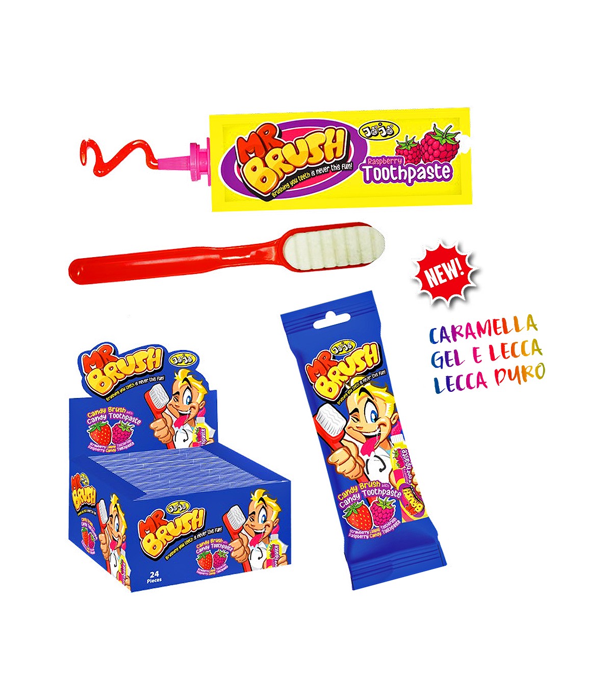 MR BRUSH SPAZZOLINO PER DIPINGERE LA LINGUA CON DENTIFRICIO AL GUSTO FRUTTI DI BOSCO DA 25G. CONF. 24 PZ.
