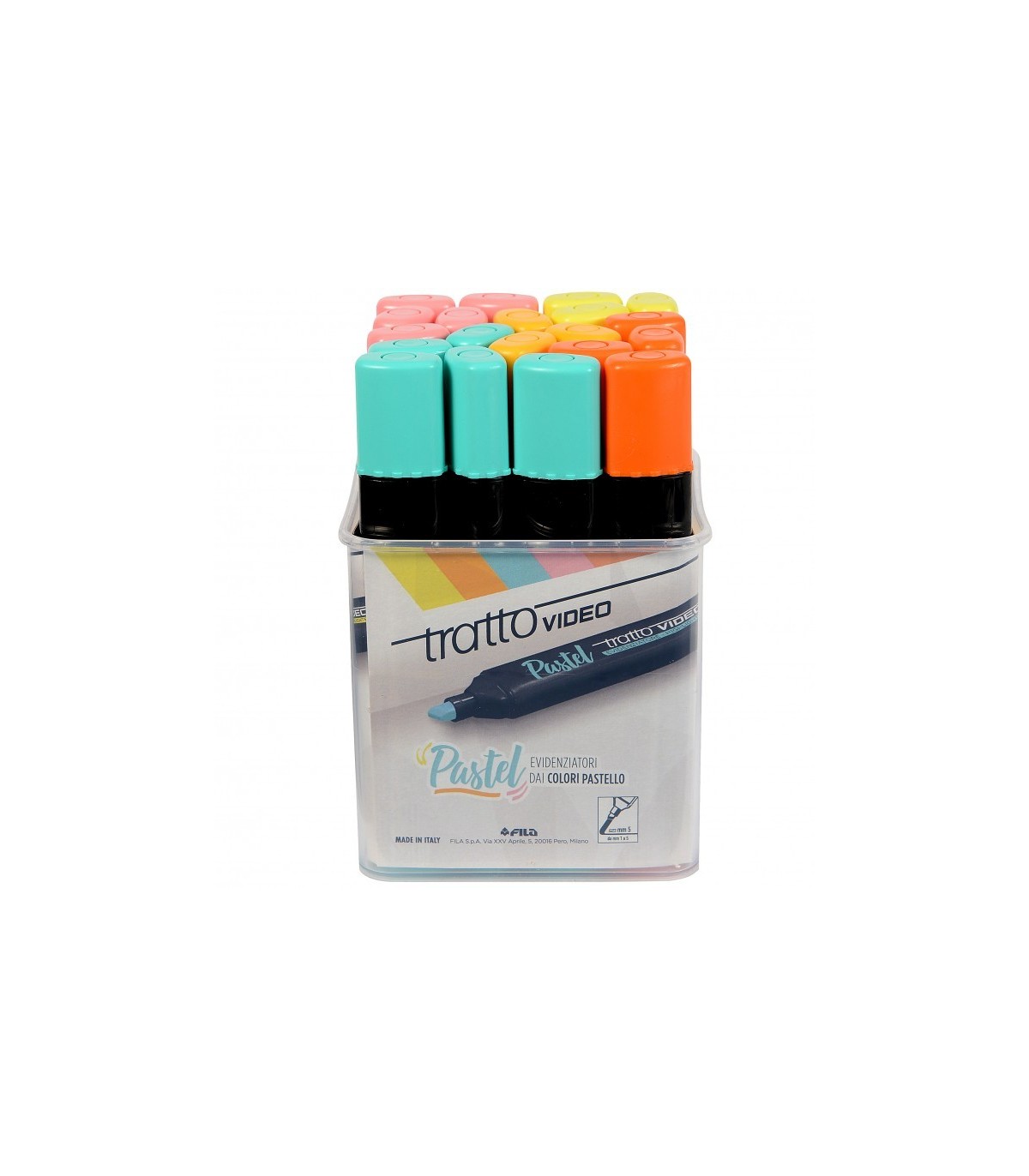 Evidenziatore Tratto Video assortito colori Pastello (verde-arancio-celeste-rosa-viola-giallo) conf. da 20 pz.