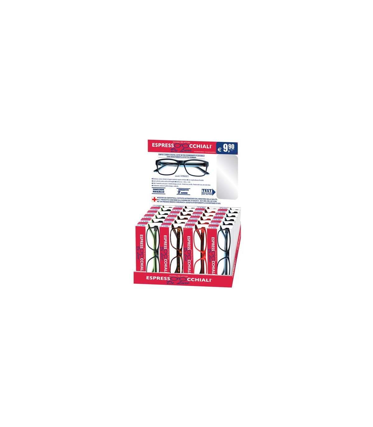 Completi di elegante astuccio in pelle ecologica, panno per la pulizia delle lenti, cordoncino per appendere al collo gli occhiali, garanzia di due anni.