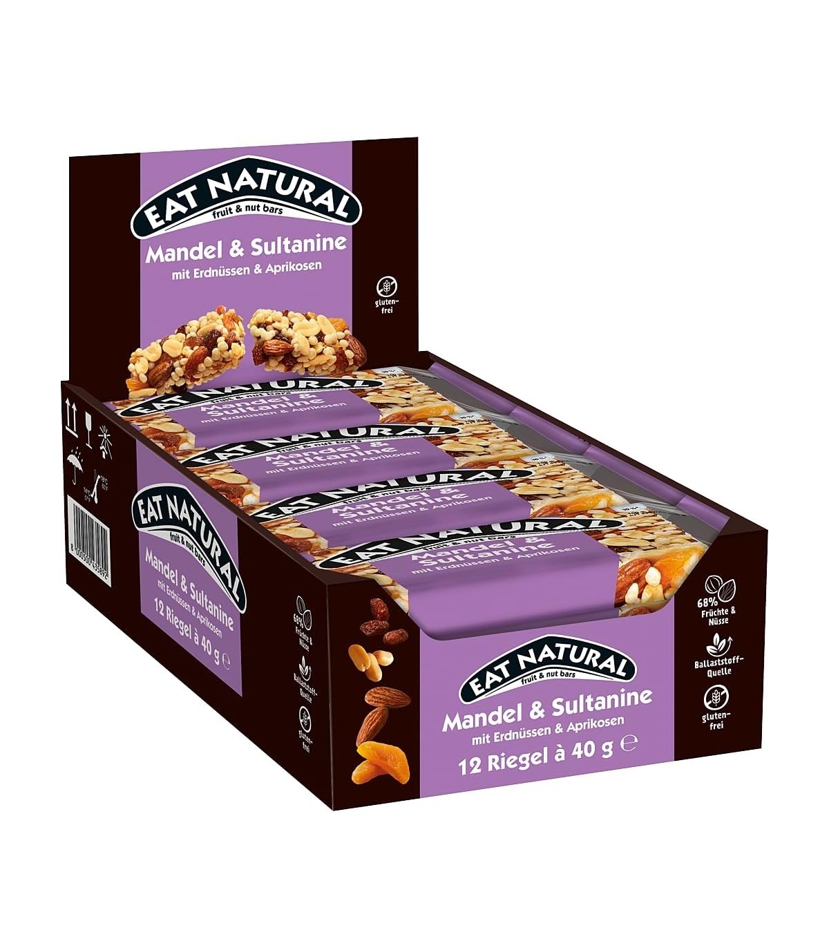 BARRETTA EAT NATURAL MANDORLE E UVA SULTANINA CON ARACHIDI E ALBICOCCHE CONF.12 PZ X 40GR SCADENZA 03/05/2026