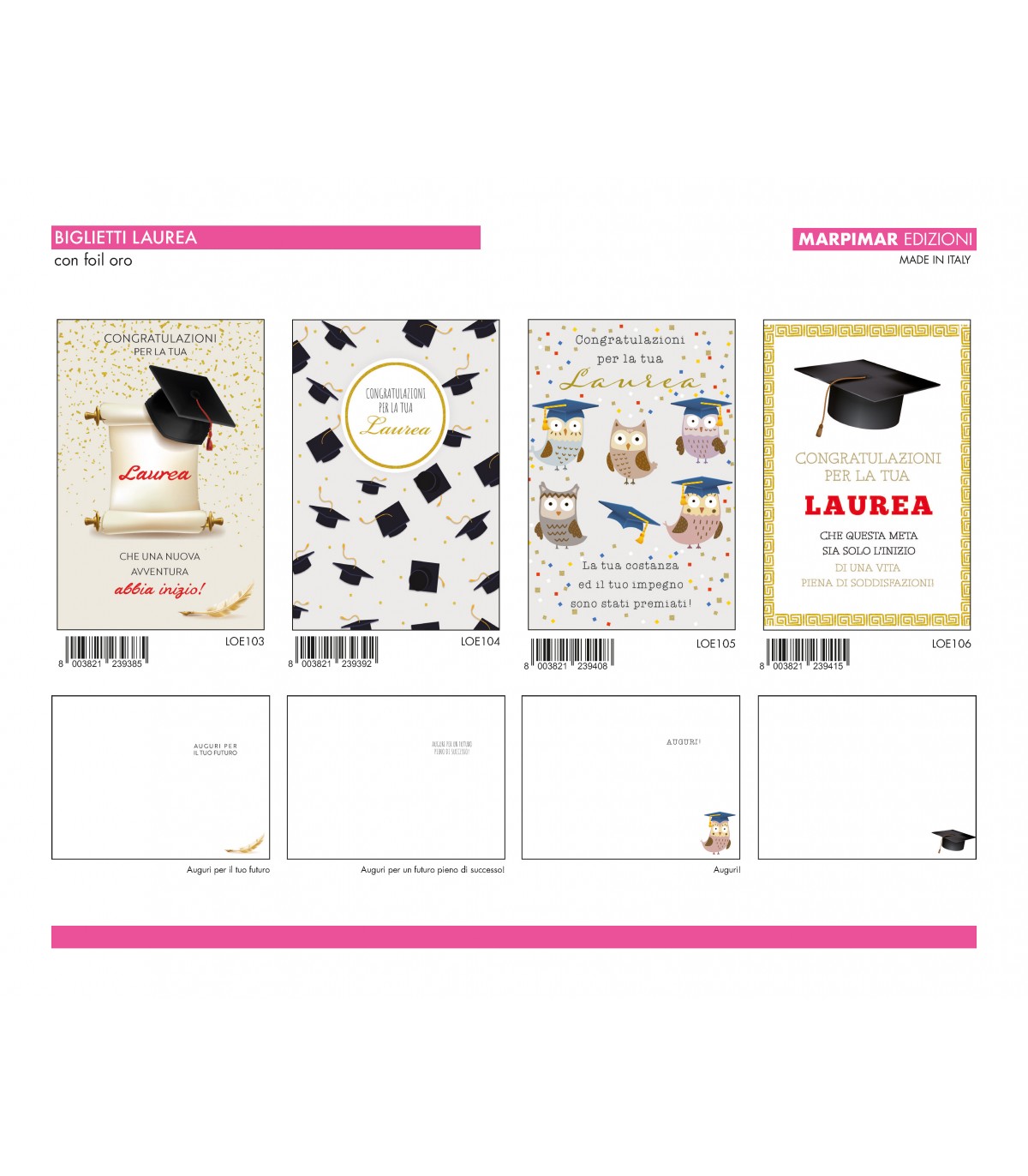 Biglietto LAUREA MARPIMAR CON FOIL ORO CONF. 12 PZ. ASSORTITI
