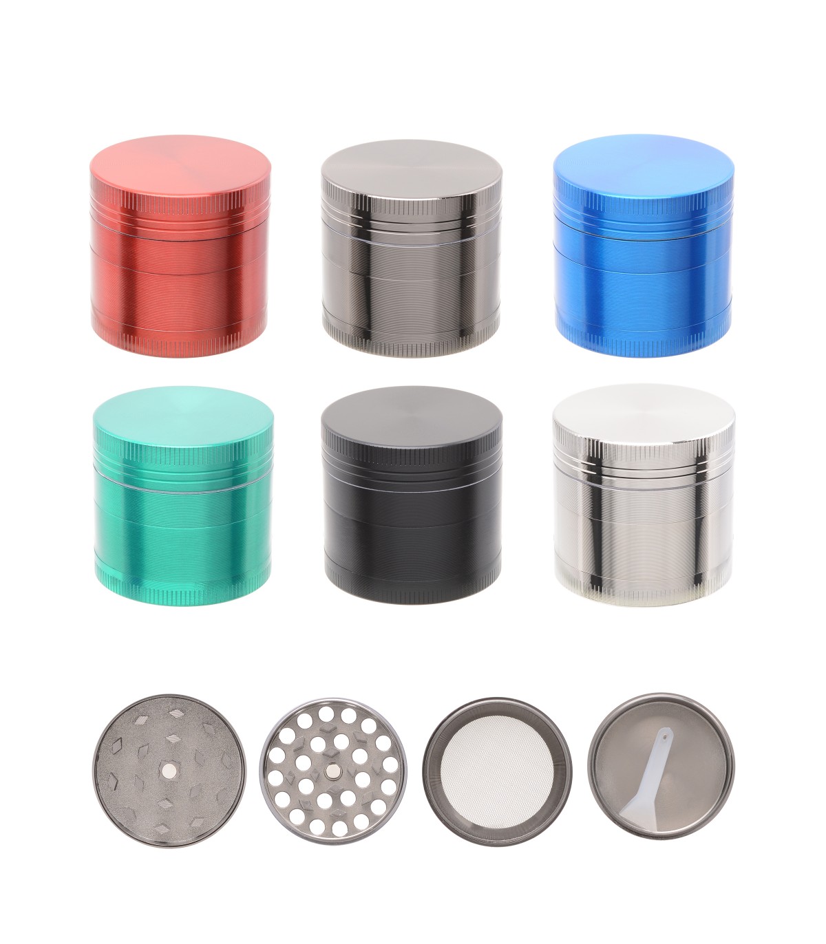 GRINDER ATOMIC IN METALLO IN 4 PARTI DIAM. DA 40 MM EXPO 12 PZ 6 COLORI ASSORTITI
