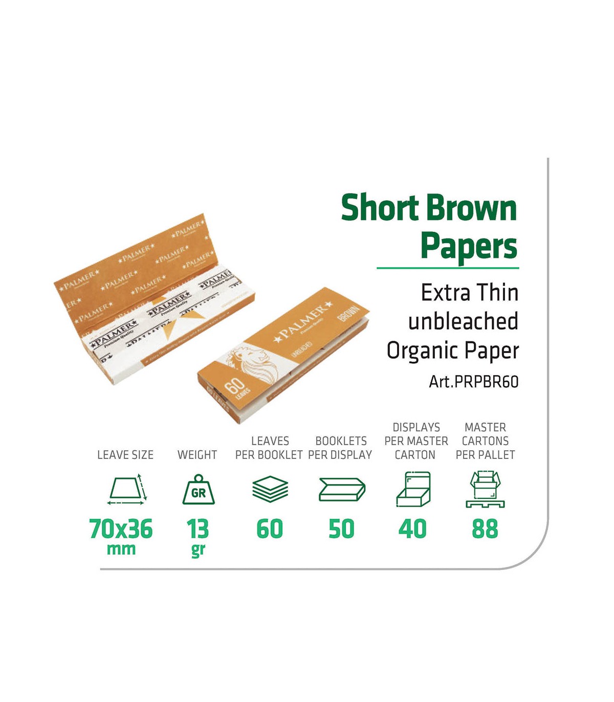 Cartina PALMER corta organic BROWN extra fine CONF. DA 50 LIBRETTI da 60 cartine
