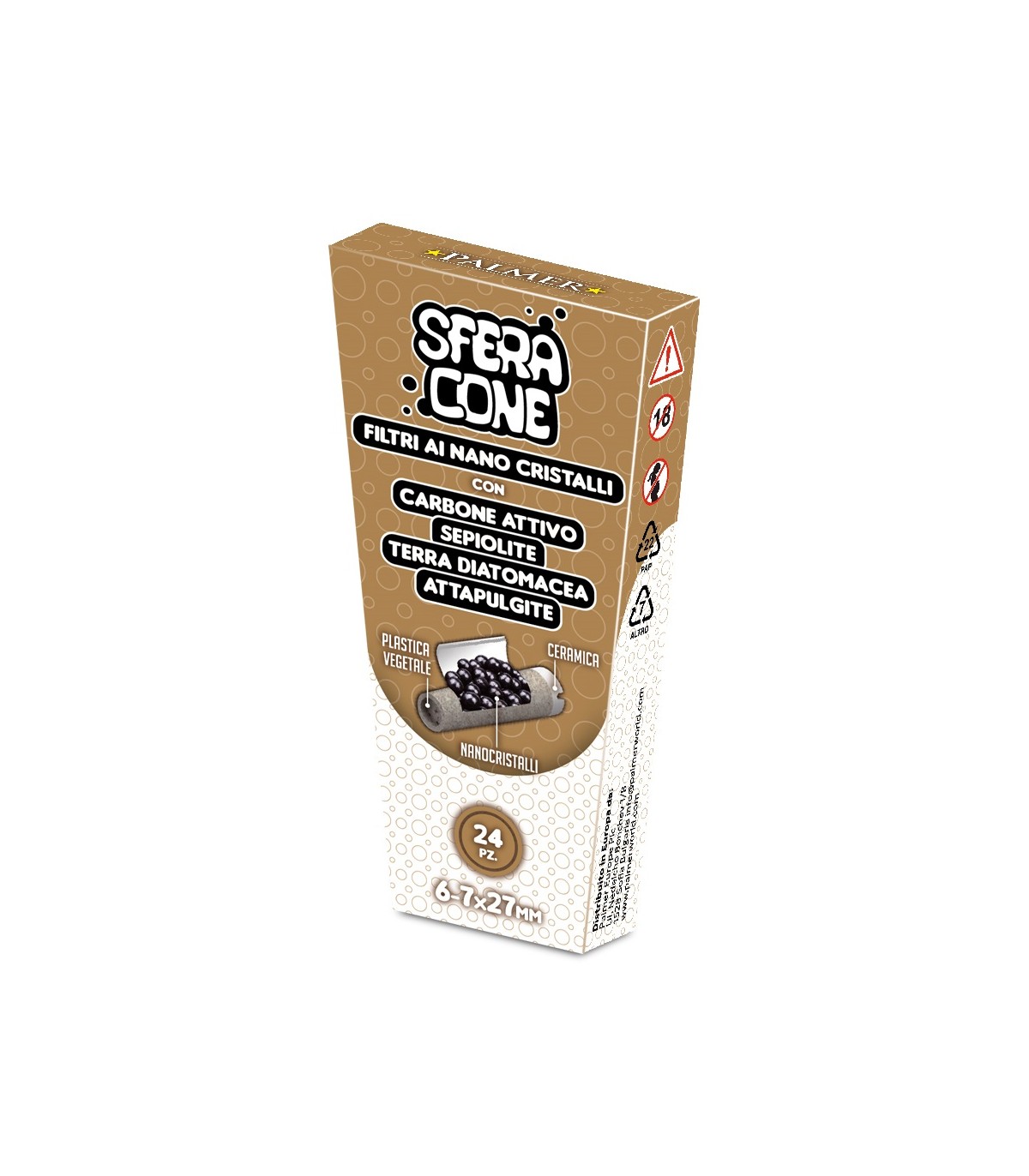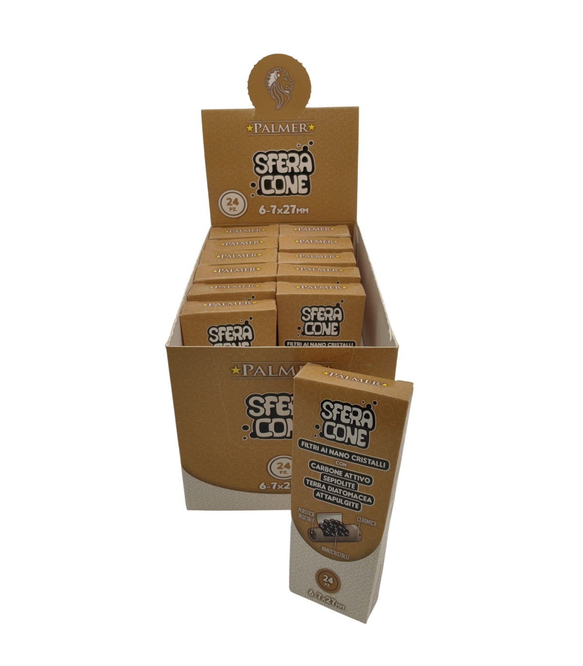 Filtri sfera PALMER conici ai nano cristalli con carbone attivo 6/7 MM L.27 MM IN BUSTINA CONF. 12 box DA 24 FILTRI