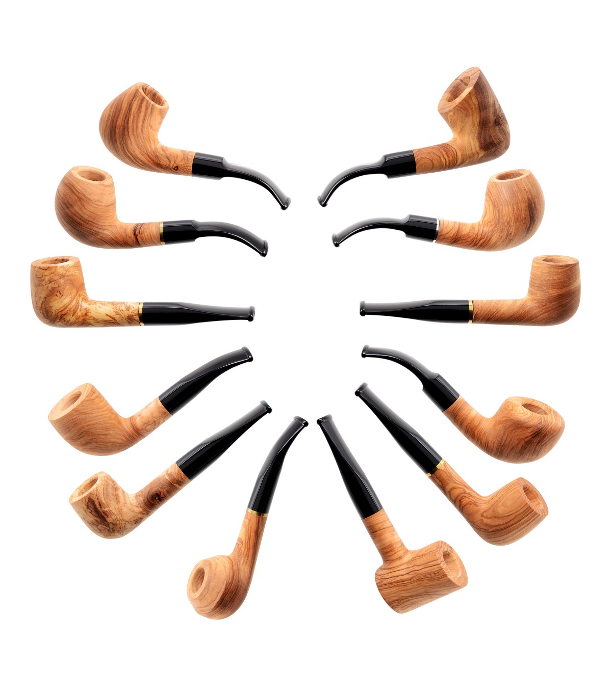 Pipa in LEGNO MYON midi Legno d'ulivo L.12 cm DIAMETRO 9MM CON BUSTINA IN TESSUTO DISPONIBILE in diversi modelli