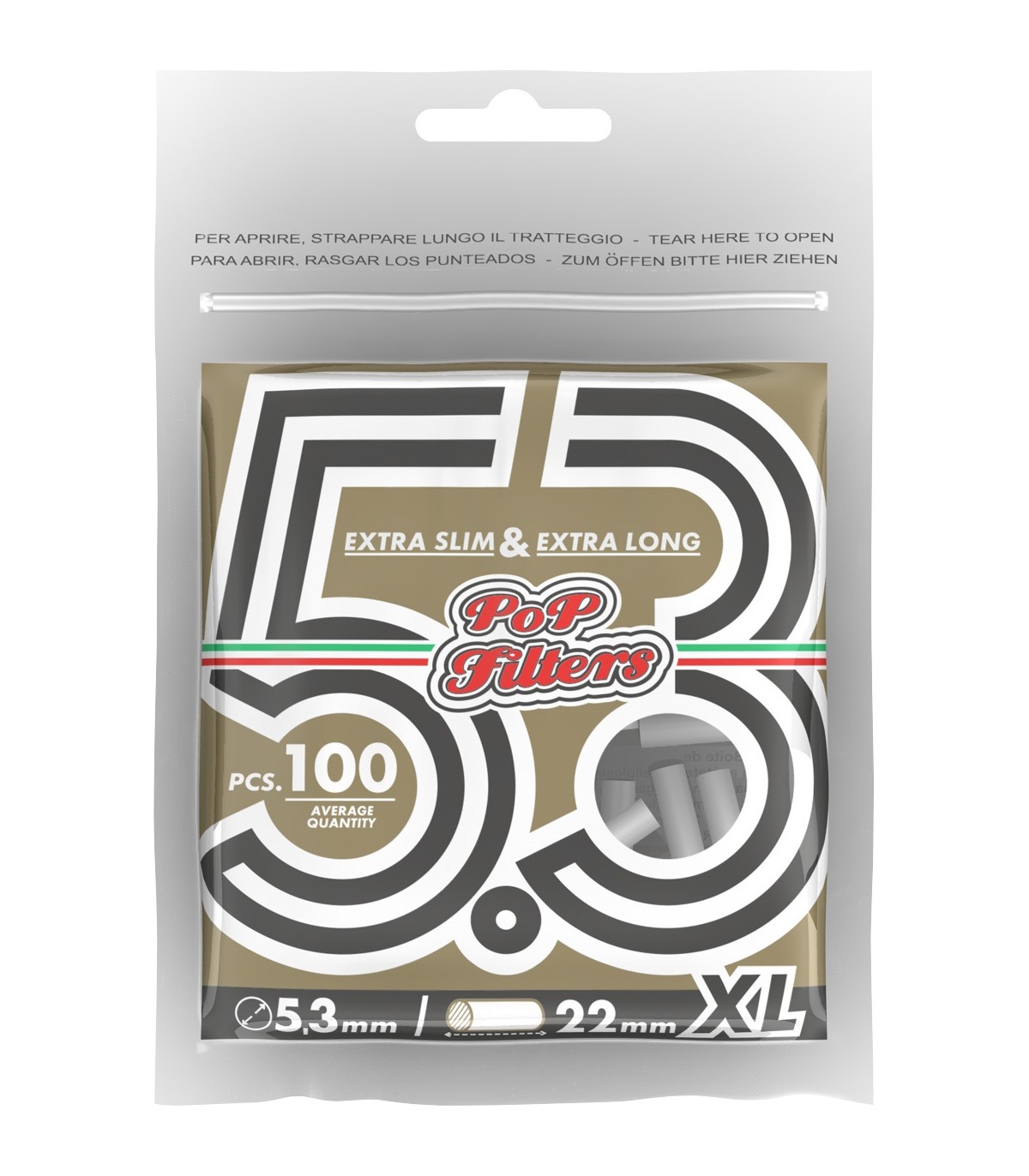 Ogni filtro XL , in acetato di cellulosa di origine europea prodotto senza l’utilizzio di alcun tipo di polimeri plastici, è avvolto da una striscia di carta perfettamente liscia che agevola lo csorrimento della cartina in fase di rollaggio.