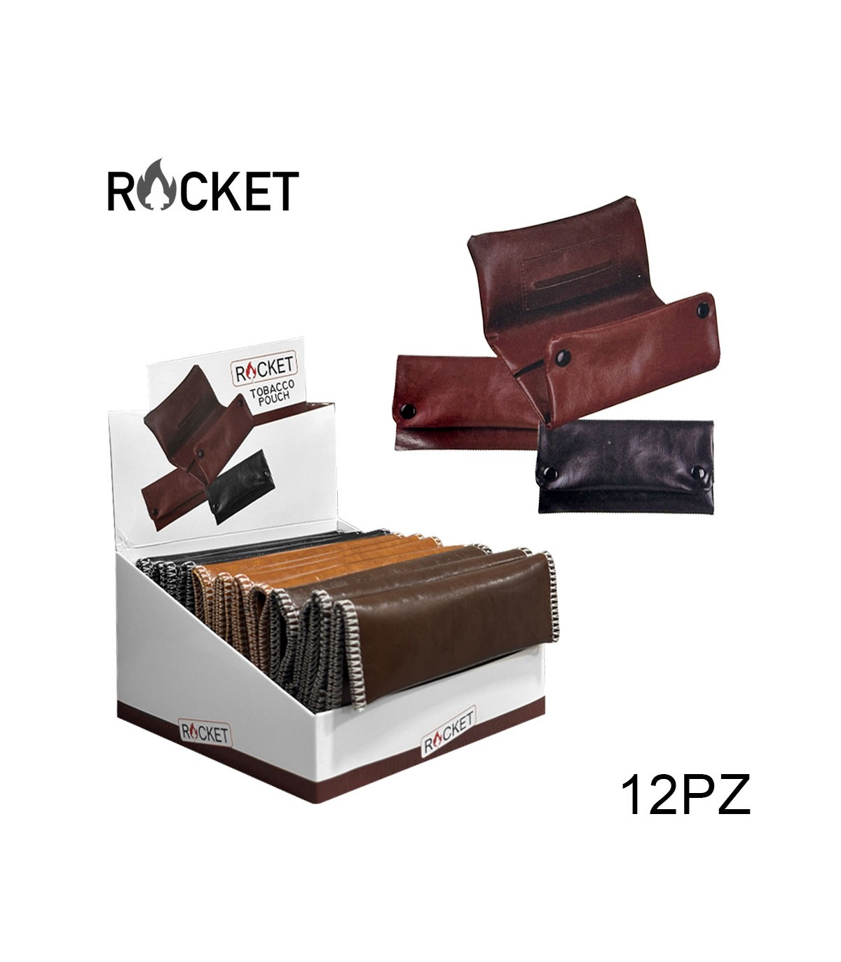 Busta Portatabacco ROCKET IN pelle Expo da 12PZ assortiti con 3 colori