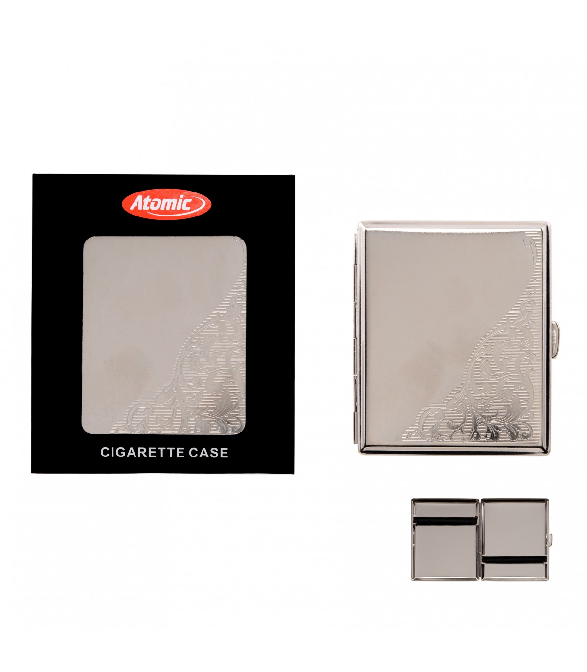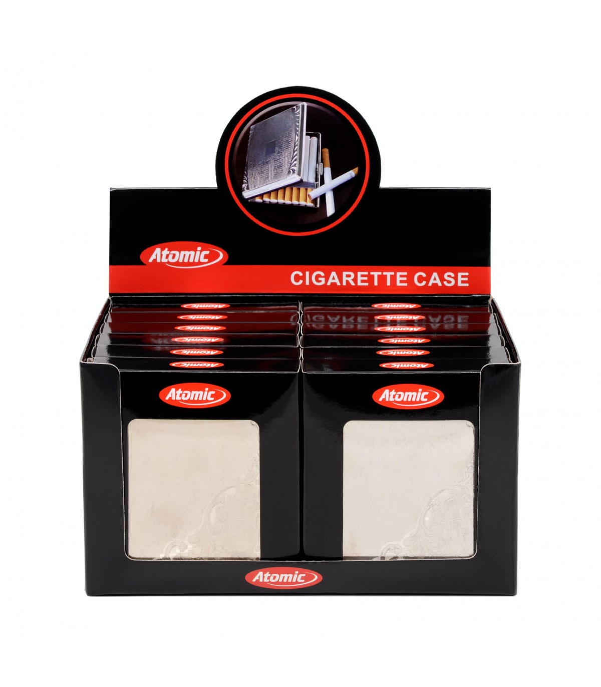 Portasigarette Atomic in Metallo CROMATO CON ELASTICO DIMENSIONI 80X95 MM Expo DA 12 pz. GRAFICA A RILIEVO CON MOTIVO VENEZIANO