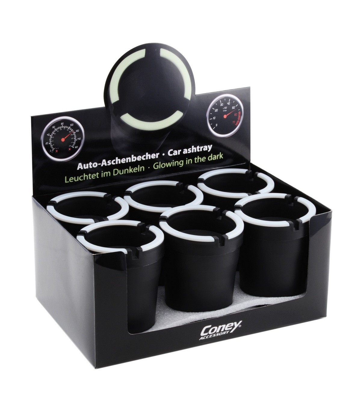 Posacenere da Auto in Plastica Expo da 6 pz. colore nero CON ILLUMINAZIONE AL BUIO