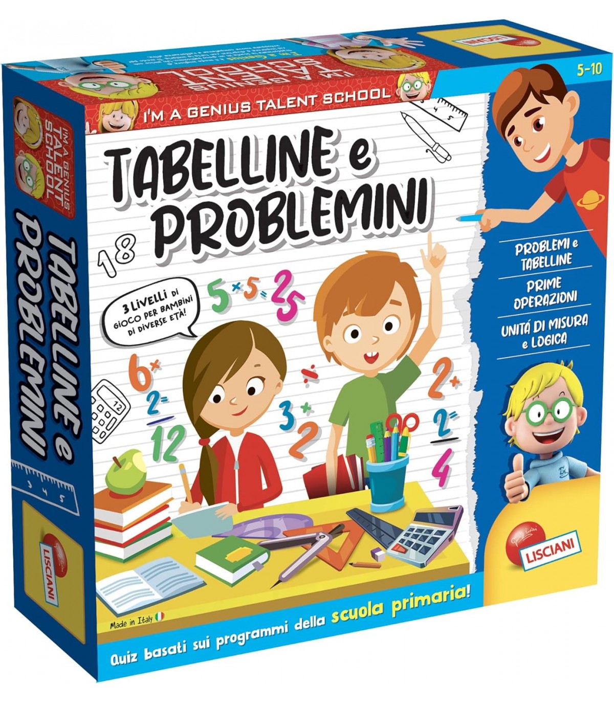 I'M A GENIUS TABELLINE E PROBLEMINI QUIZ BASATI SUI PROGRAMMI DELLA SCUOLA PRIMARIA 5-10 LISCIANI GIOCHI