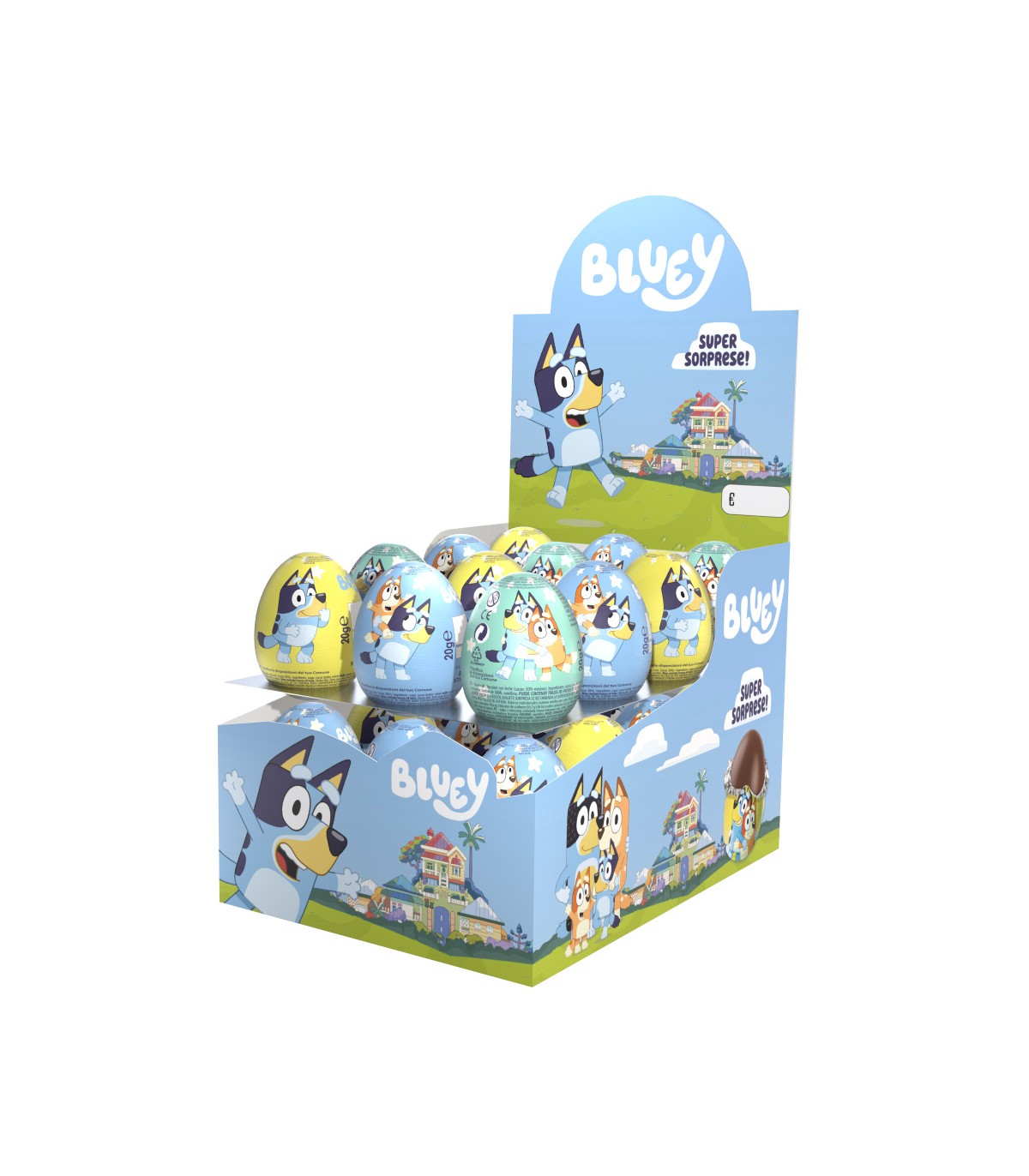 OVETTO DI CIOCCOLATO AL LATTE DOLFIN BLUEY 20 GR. CON SORPRESA EXPO 24 PZ.