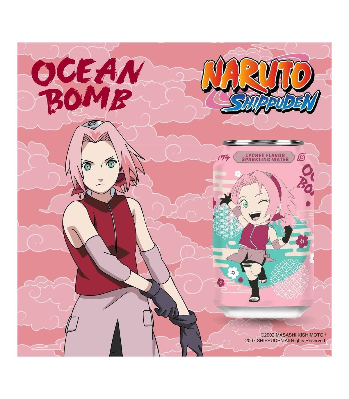 BEVANDA OCEAN BOMB NARUTO SHIPPUDEN SAKURA BEVANDA FRIZZANTE AL GUSTO DI LITCHI LATTINA DA 330ML 1PZ ( SCADENZA 11/01/2026)