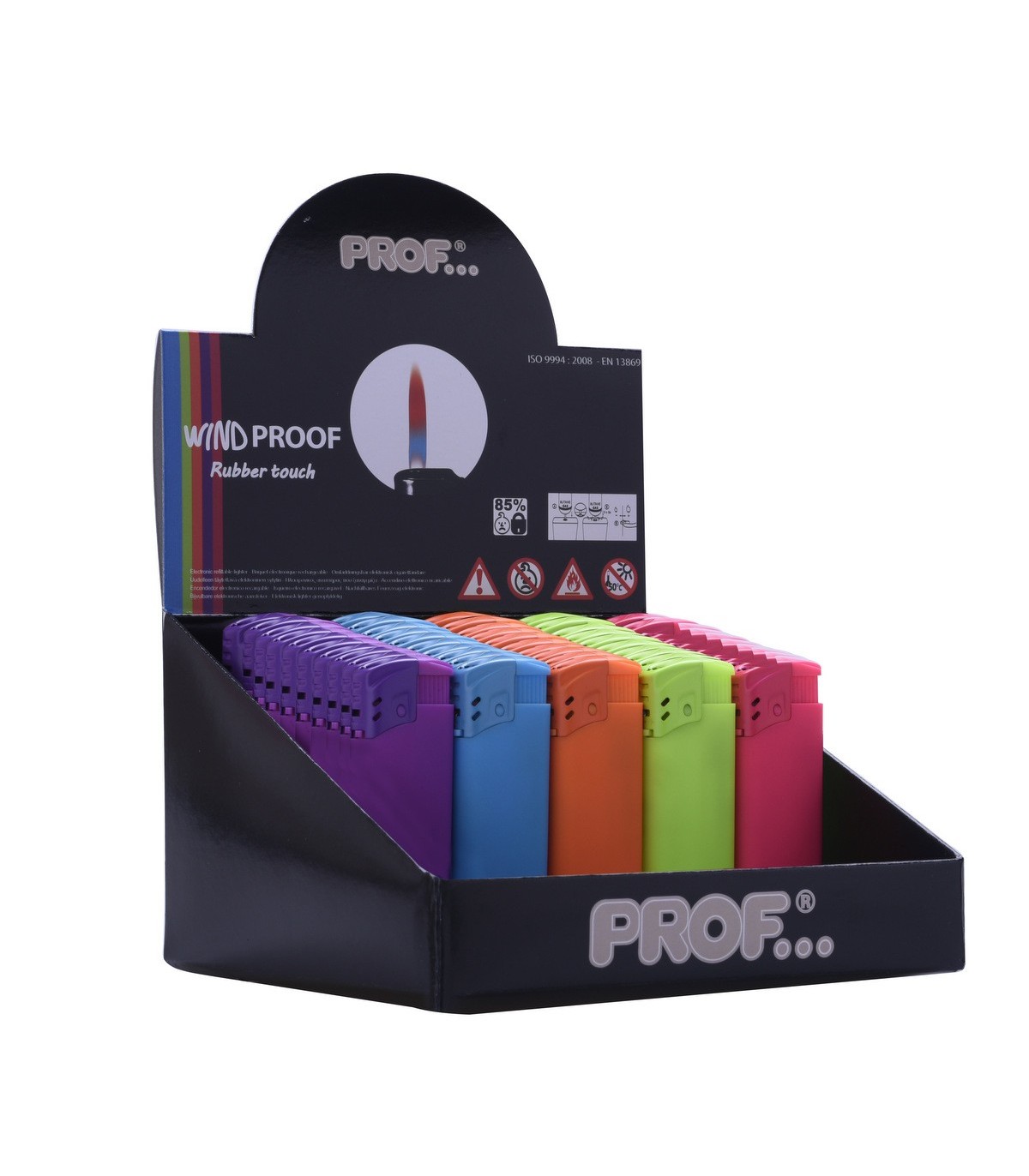 Accendino ELETTRONICO Prof Turbo Flamy color (FIAMMA COLORATA) conf. 50 pz. ASSORTITO CON 5 COLORI