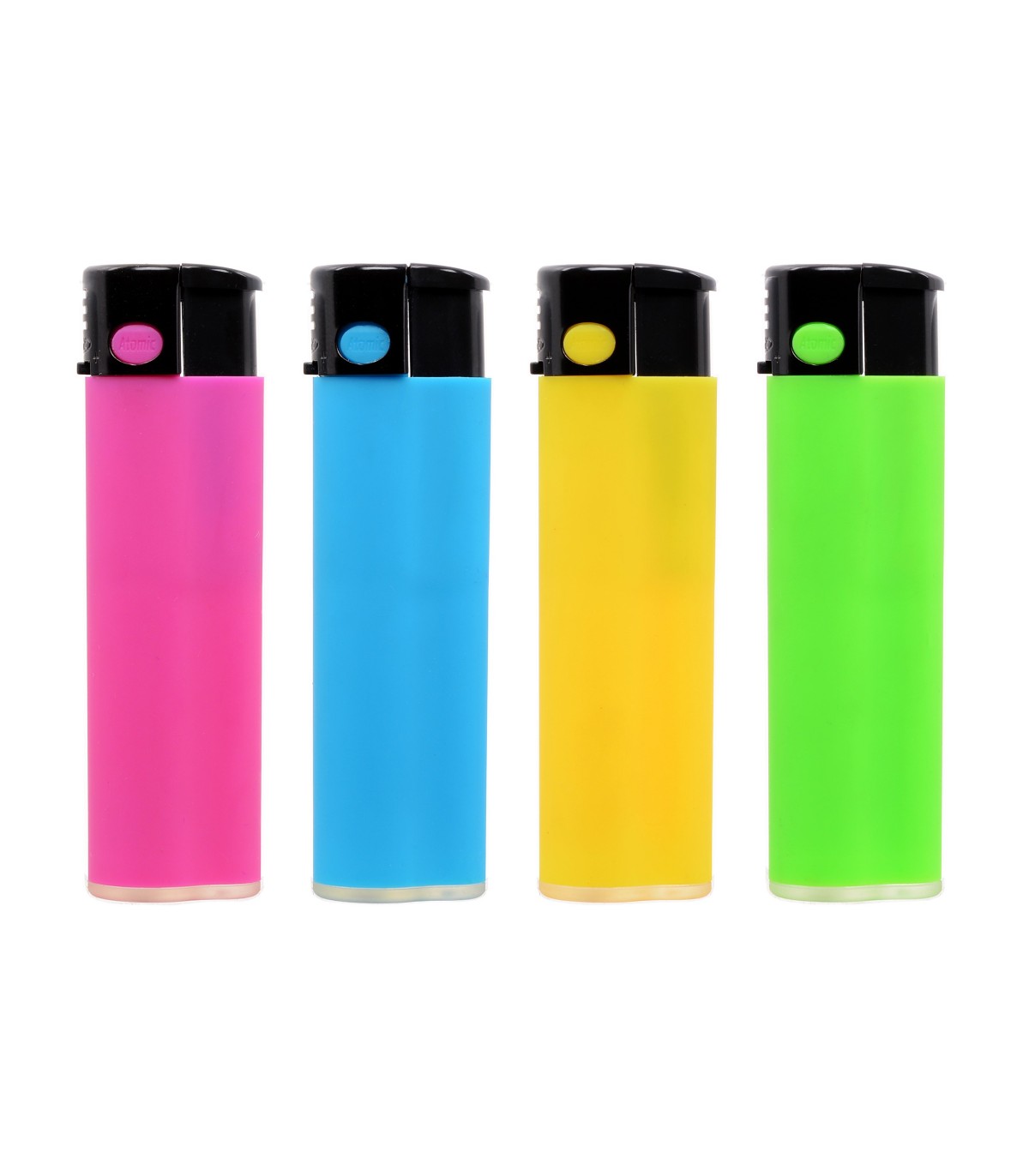 ACCENDINO ELETTRONICO ATOMIC FESTIVAL "TIPO CLIPPER" TURBO JET colori neon CONF. 24 PZ. COLORI ASSORTITI