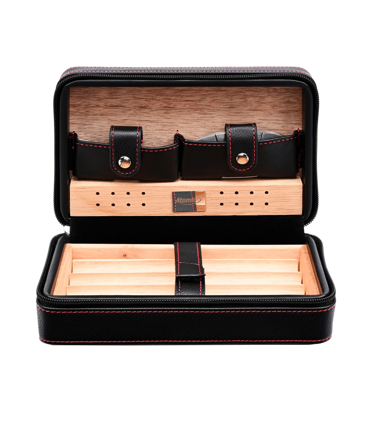 Umidificatore per Sigari DA VIAGGIO può contenere fino a 4 SIGARI realizzato IN PELLE con Tagliasigari