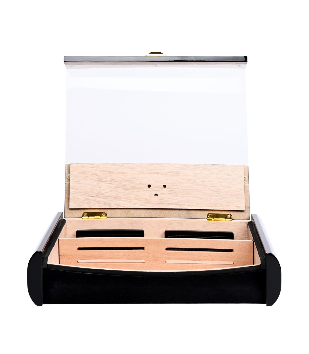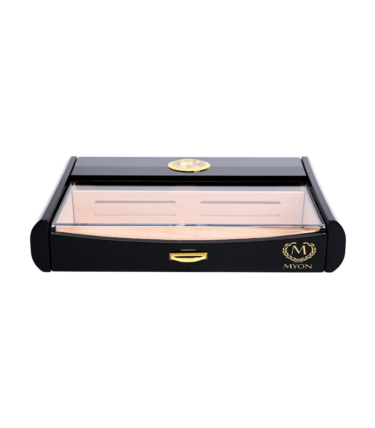 Umidificatore per Sigari MYON IN LEGNO DI CEDRO CON FINITURA NERO CARBON FINESTRA IN VETRO