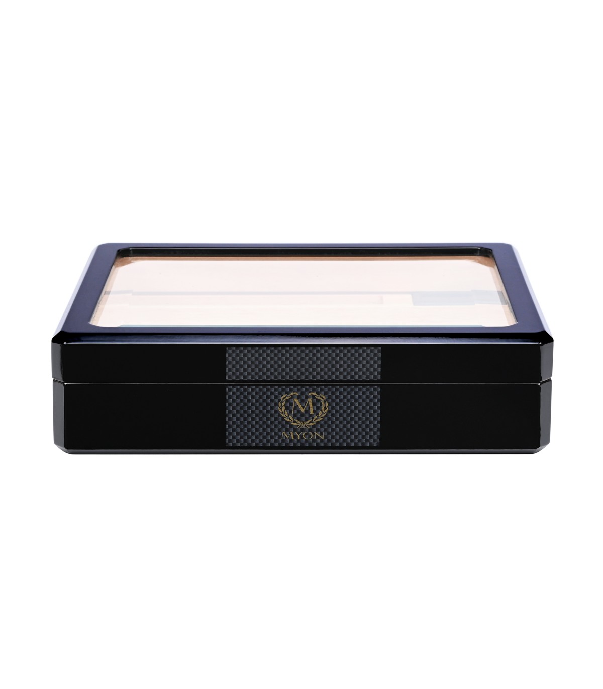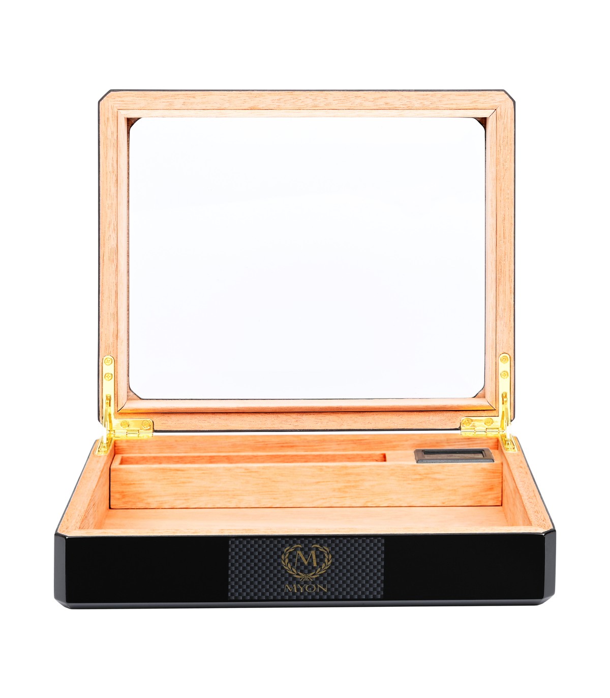 Umidificatore per Sigari MYON IN LEGNO DI CEDRO fino a 15/25 SIGARI CON FINITURA NERO LUCIDO FINESTRA IN ACRILICO