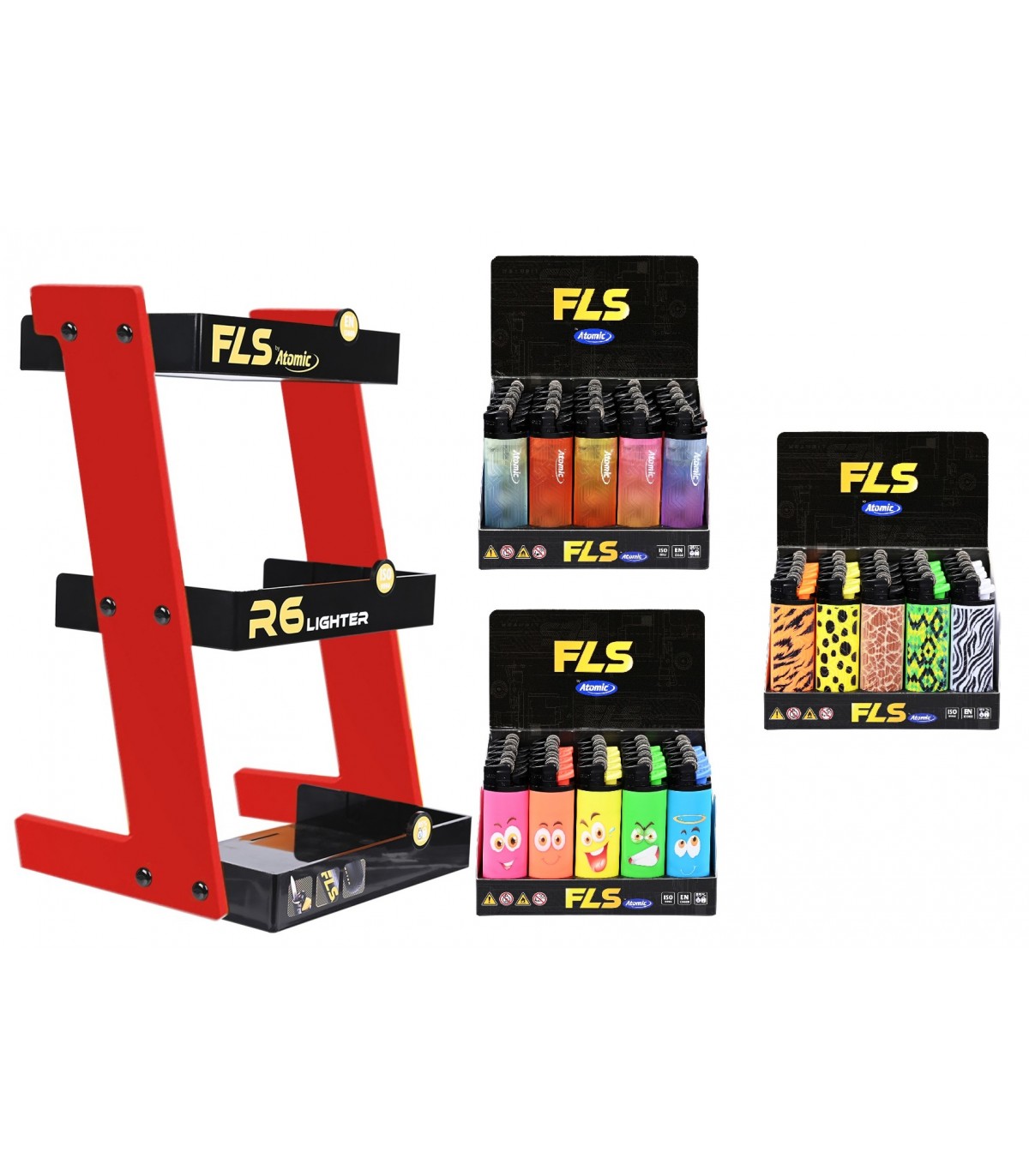 DISPLAY A 3 PIANI ATOMIC FLS IN PLASTICA IN OMAGGIO CON L'ACQUISTO DI 3 CF ACCENDINI ATOMIC FLS DA 25PZ. (TOTALE 75PZ.)