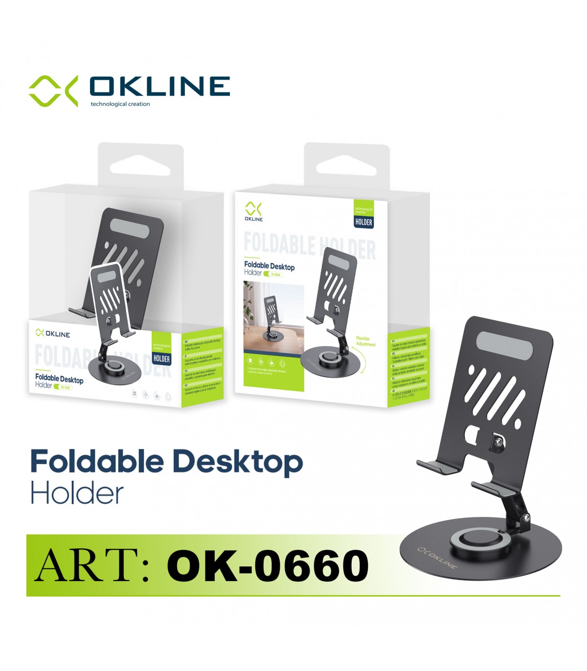 SUPPORTO DA TAVOLO PER TELEFONO O TABLET PIEGHEVOLE CON MULTI ANGOLO REGOLABILE IN METALLO OKLINE